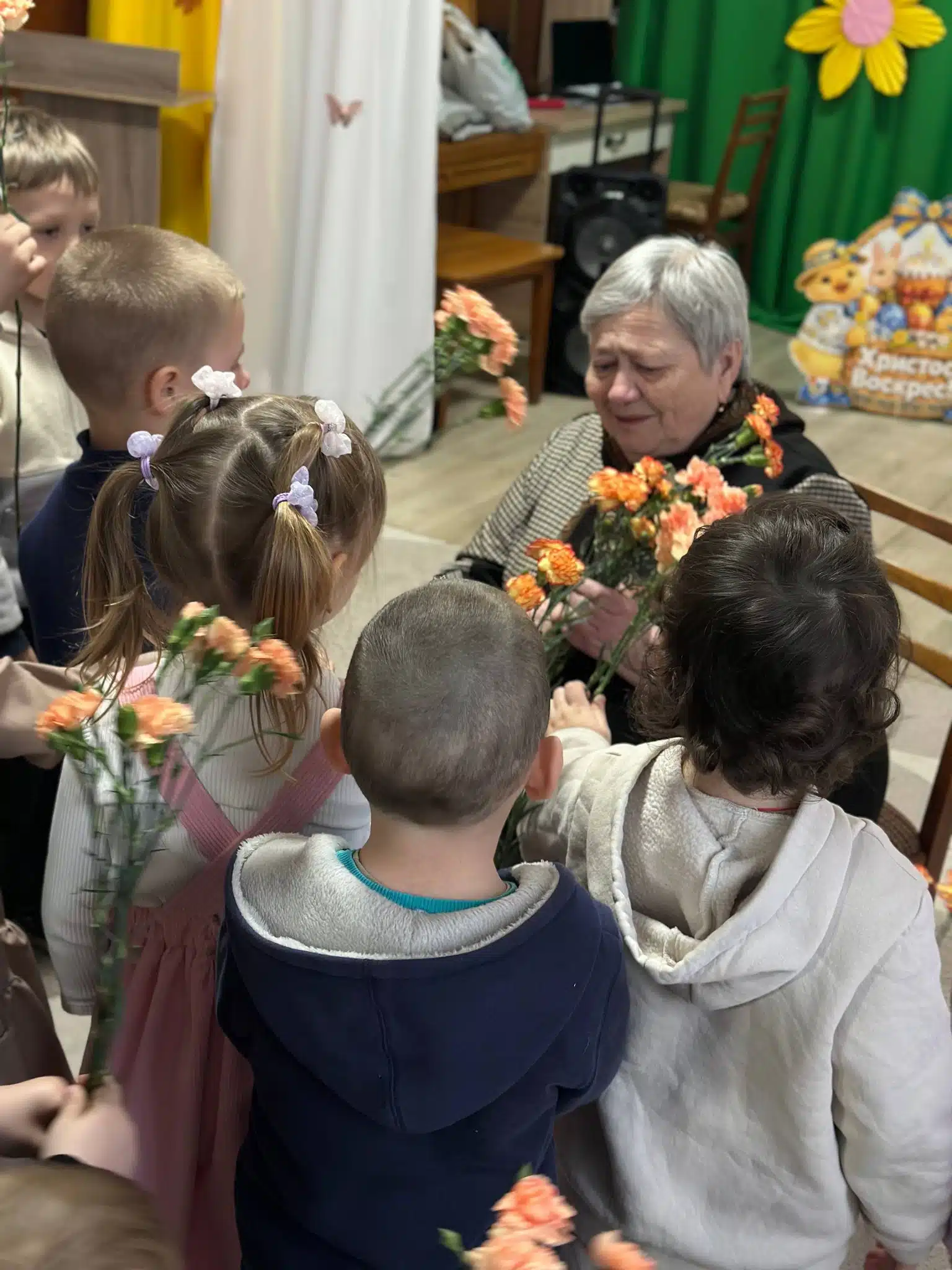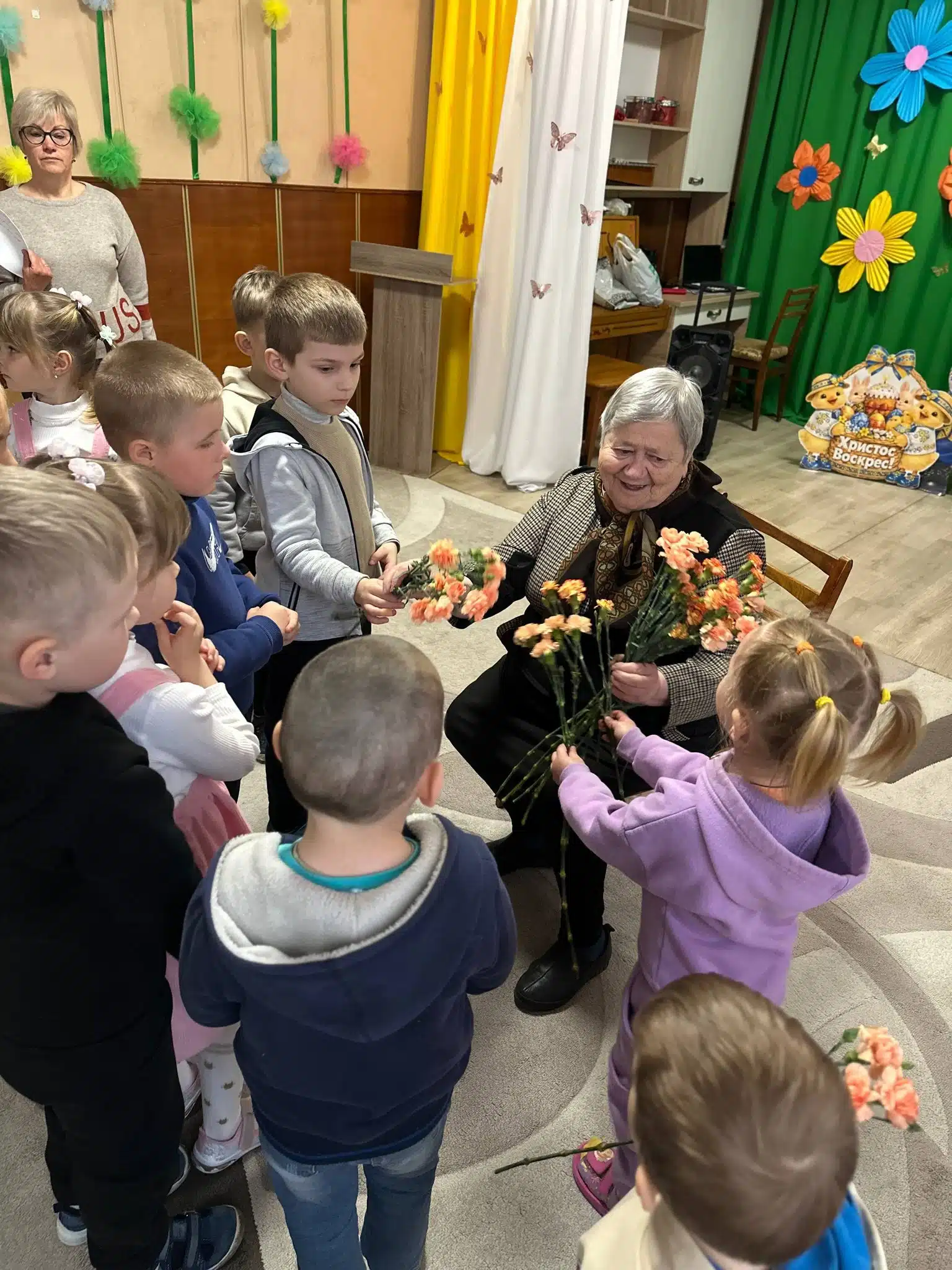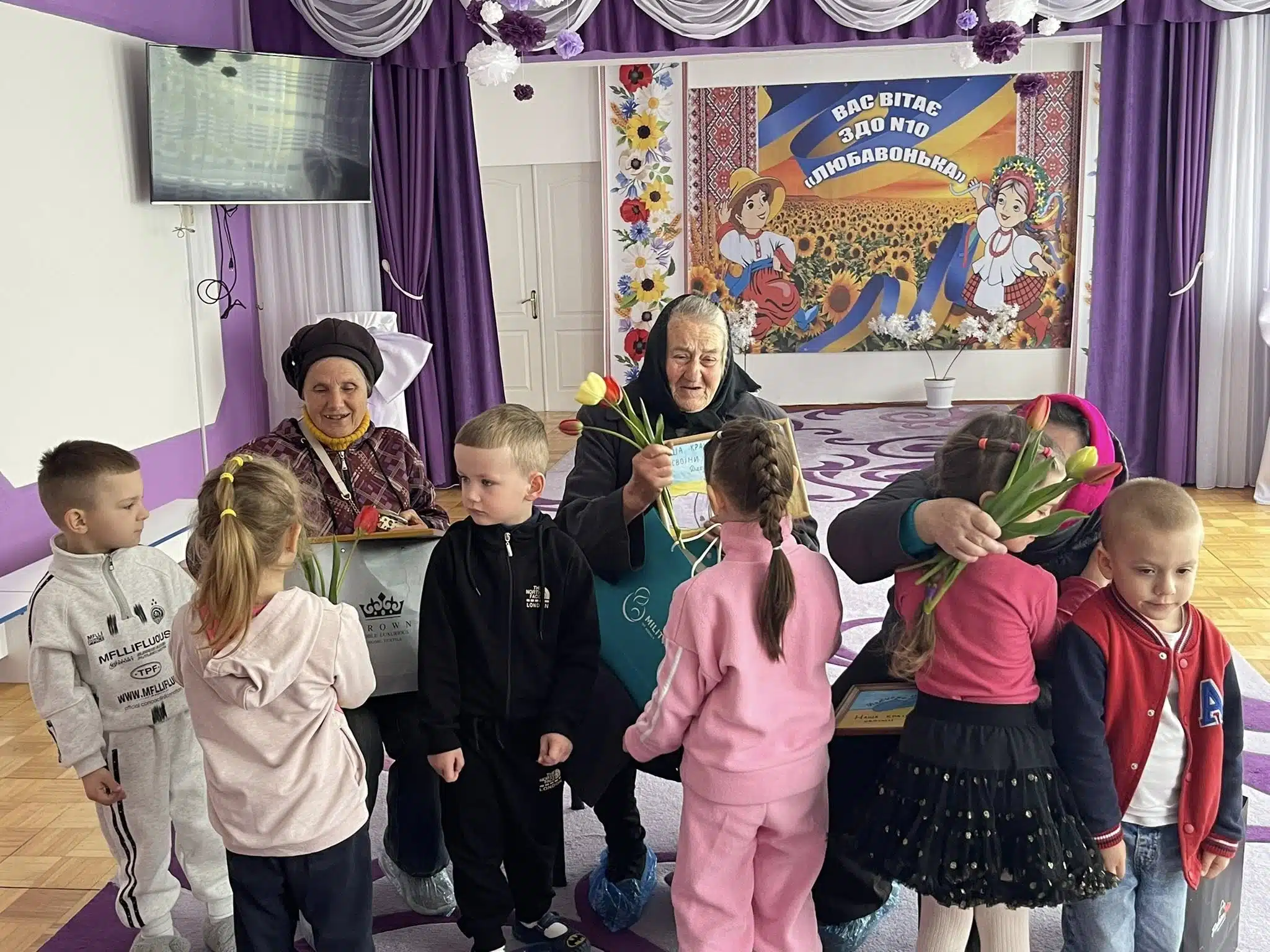 Директорка дитсадка Анюта Геворгян звернулася до жінок зі словами вдячності та підтримки. Діти подарували квіти й малюнки.