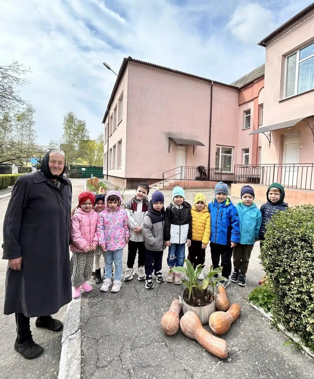 У відповідь Варвара Василівна подарувала садочку кущики канн, щоб вони радували всіх своїм цвітінням, а малюкам принесла гарбузи для смачної каші.