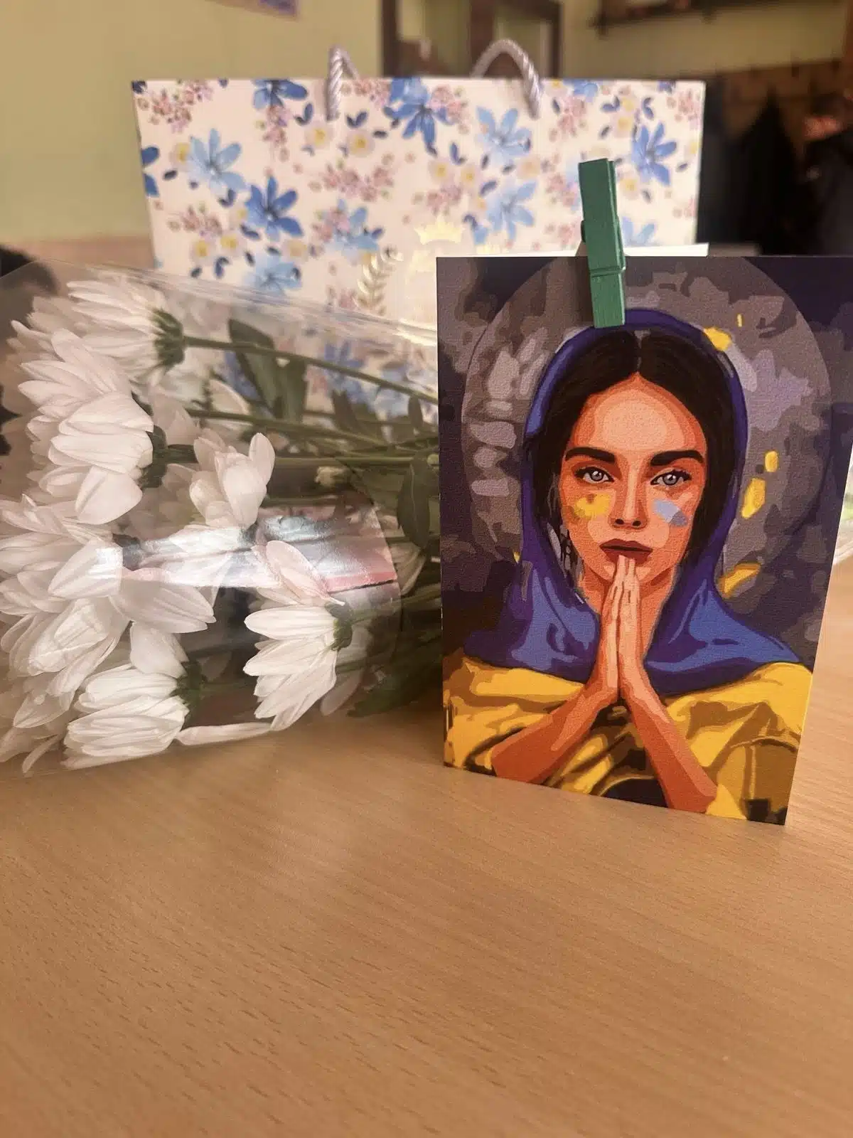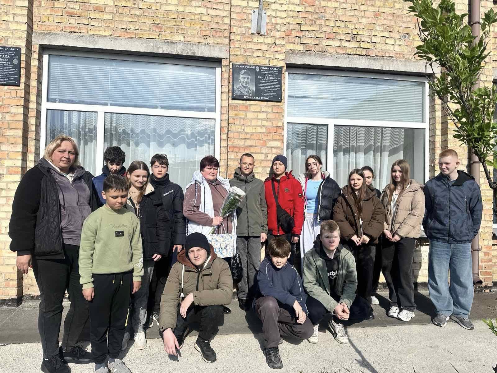 Учні 7 класу Переяславської гімназії №4 на чолі з класним керівником запросили маму полеглого Героя, випускника закладу Сергія Тарасюка – Тетяну Іванівну. Школярі привітали її з прийдешнім Днем матері, побажали міцного здоров’я, душевного спокою та мирного неба.