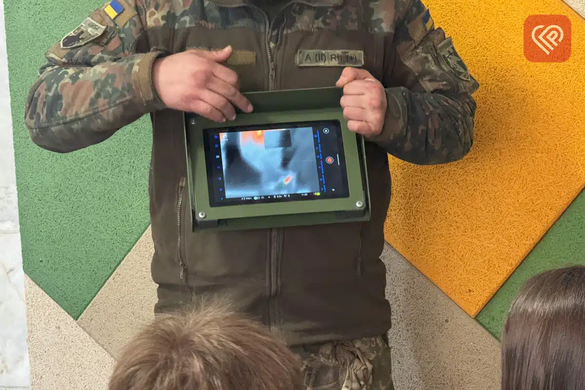 Окрему увагу приділили сучасним технологіям. Бійці показали роботу систем «Віраж» та «SkyMap» на планшетах. На цифровій мапі України учні бачили, як відображаються ворожі цілі та українська авіація, як передається інформація про швидкість та напрямок руху дрона від однієї групи до іншої тощо.