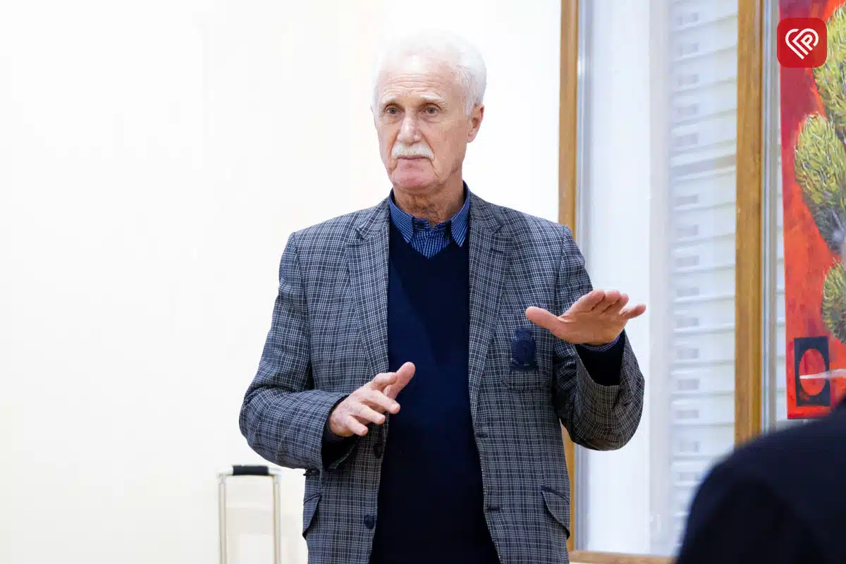 Поважний гість розповів, як у дитинстві малював аквареллю, оформлював шкільні газети, закинув пензлі на 15 років після армії, але «якщо Бог дав талант, він мучить» і він повернувся, почав творити олійними фарбами.