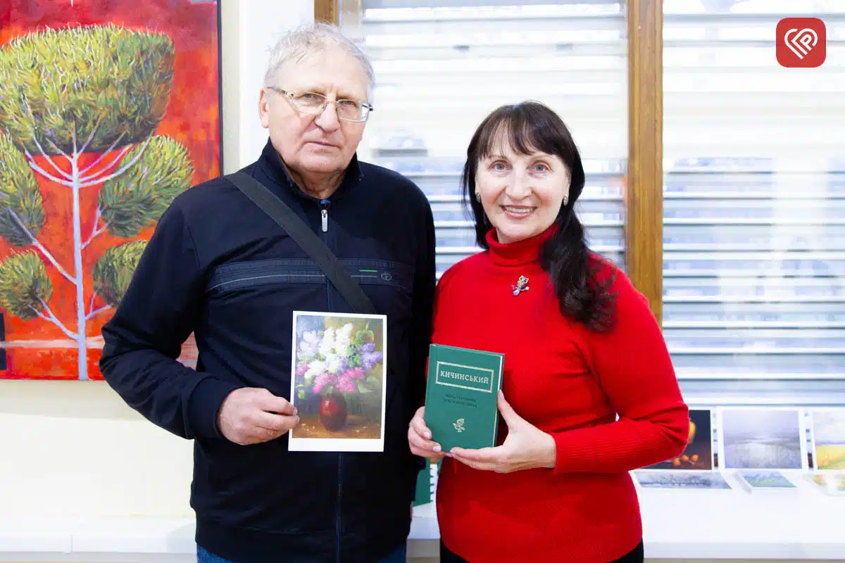Присутнім показали фотопрезентацію картин – слайди, кожен з яких Кичинський коментував та розповідав про створення чи іншого твору. Зізнався, дві його картини росіяни вкрали під час окупації, а ще кілька робіт із презентації знаходяться в колекції його друзів та відомих земляків, як-от колишнього мовного омбудсмена Тараса Кременя.