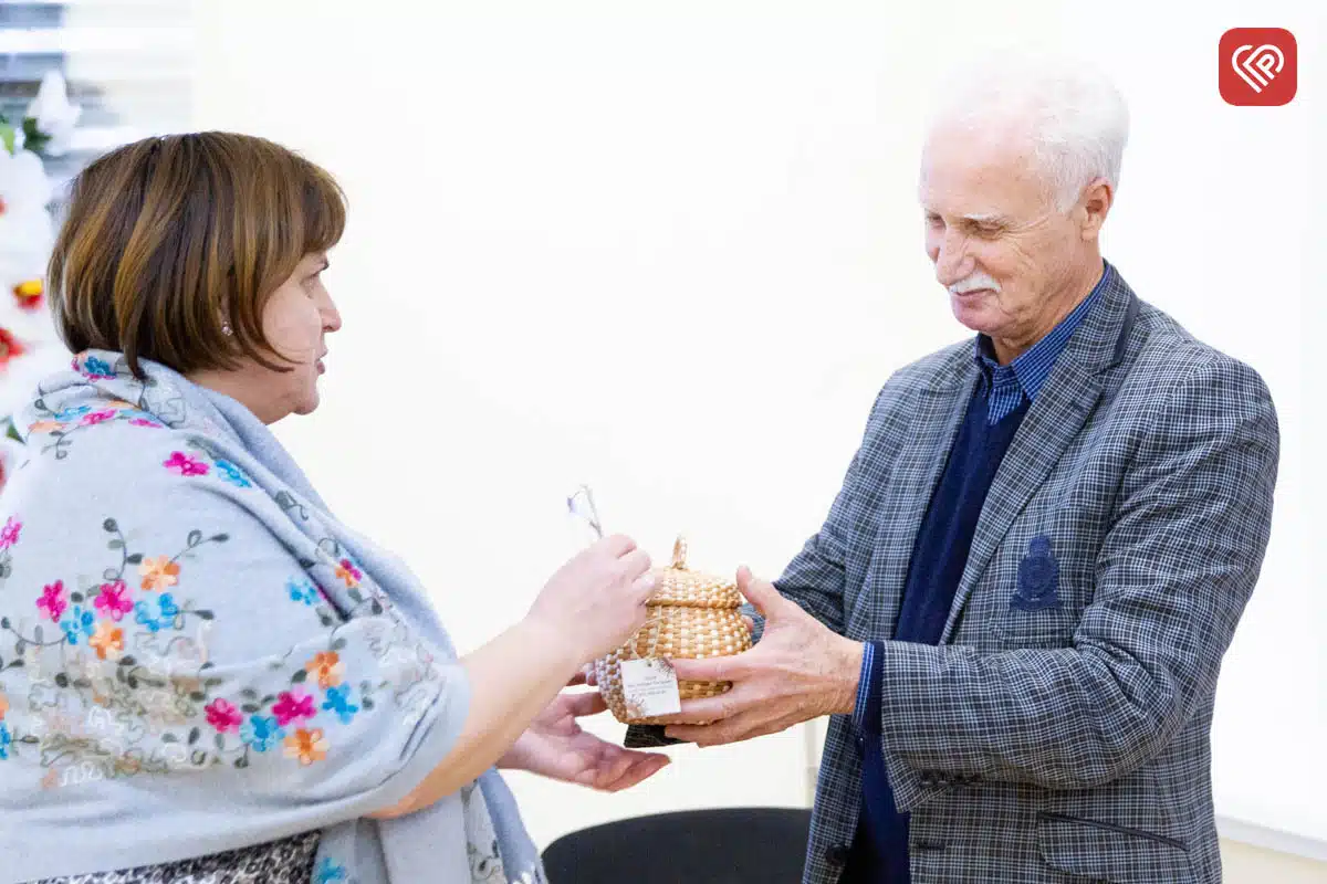 Поважний гість розповів, як у дитинстві малював аквареллю, оформлював шкільні газети, закинув пензлі на 15 років після армії, але «якщо Бог дав талант, він мучить» і він повернувся, почав творити олійними фарбами.