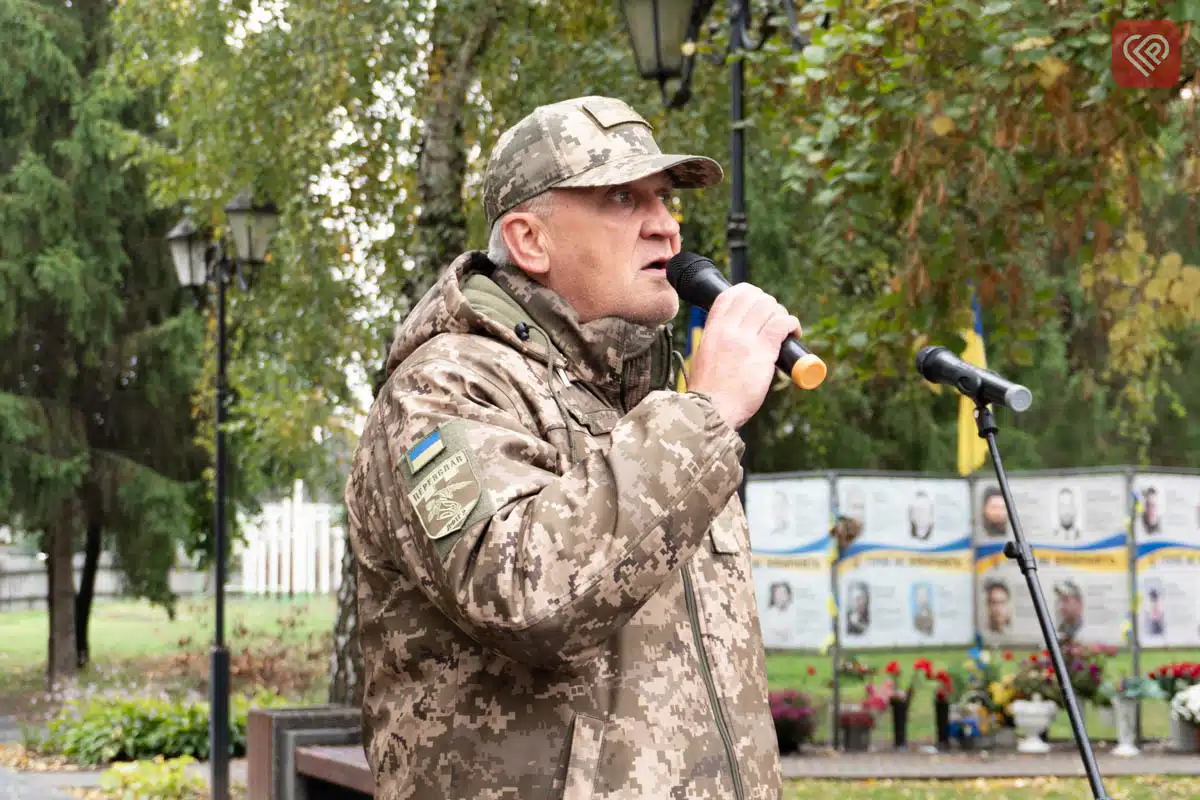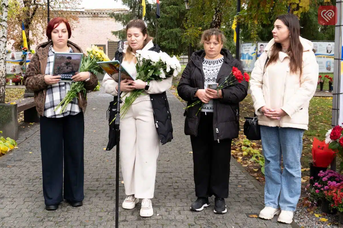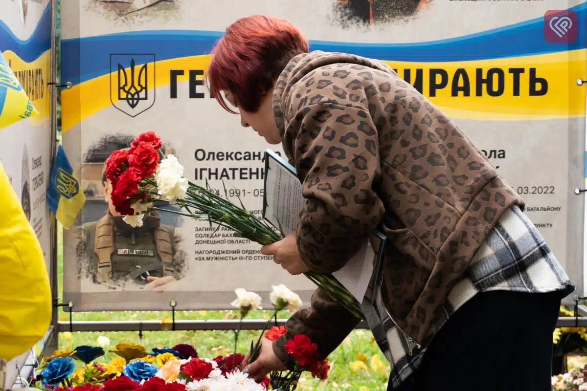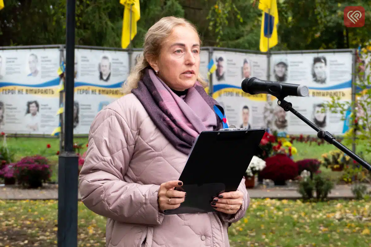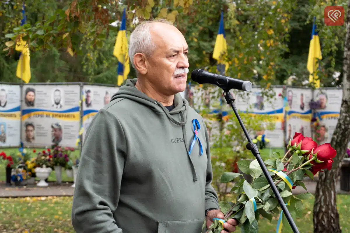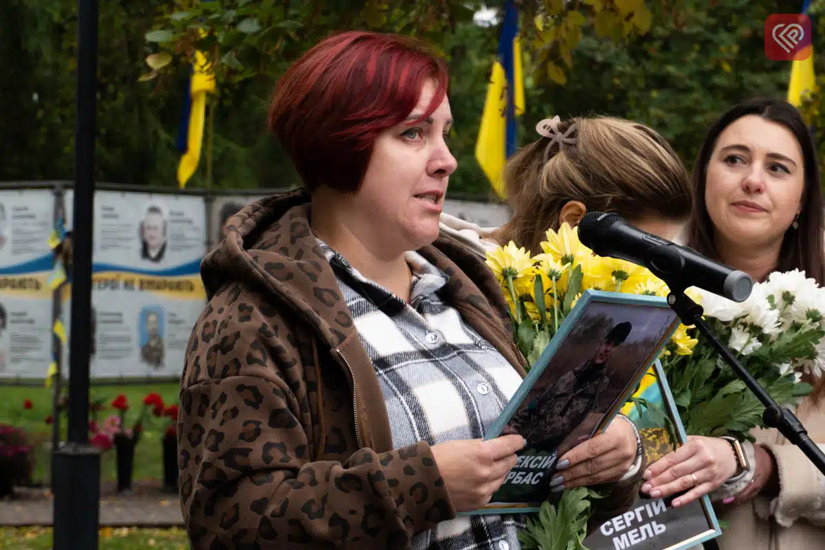 Дружина зниклого безвісти Миколи Швиденка – Ніна Швиденко прочитала зворушливий вірш. Наприкінці заходу всі присутні поклали квіти до Алеї Героїв – як символ вдячності й пам’яті про подвиг наших захисників.