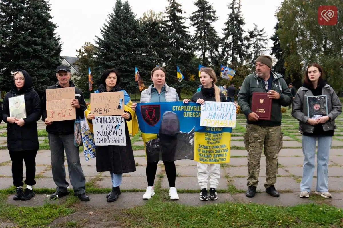 Під час мітингу виступили дружина загиблого Олексія Журбаса – Світлана, дружина загиблого Сергія Меля – Ірина Мель, дружина зниклого безвісти Вільгельма Іжаковського та мати зниклого Юрія Шинкаря – Лідія Іжаковська, а також дружина зниклого Олександра Клокова – Ольга.