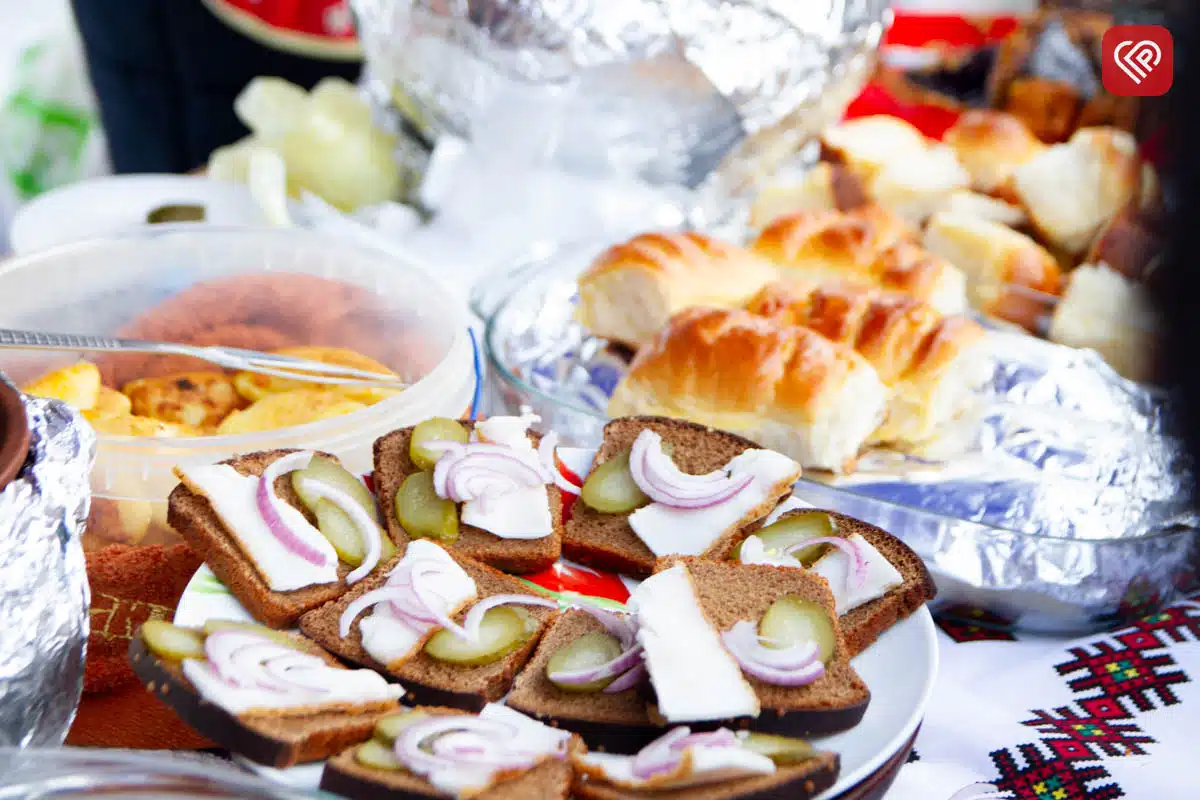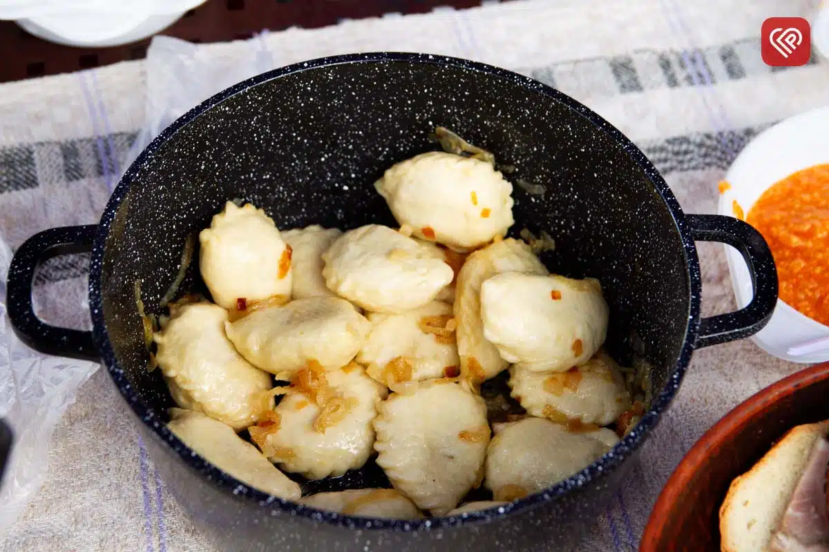 Гостей фестивалю вражало різноманіття страв. На столах можна було побачити вареники, пиріжки, млинці з різними начинками, капусняк, картоплю, бутерброди з салом, м’ясні делікатеси, тістечка та солодощі. І це неповний перелік того, чим можна було поласувати на ярмарку.