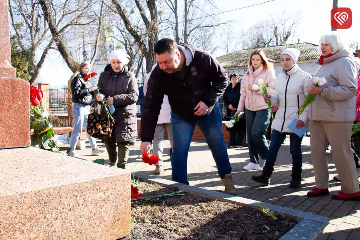 Представники міської влади, громадських організацій, керівники комунальних установ та небайдужі містяни зібралися біля пам’ятника Тарасу Шевченку на території музею «Заповіту», аби віддати шану великому українцю.