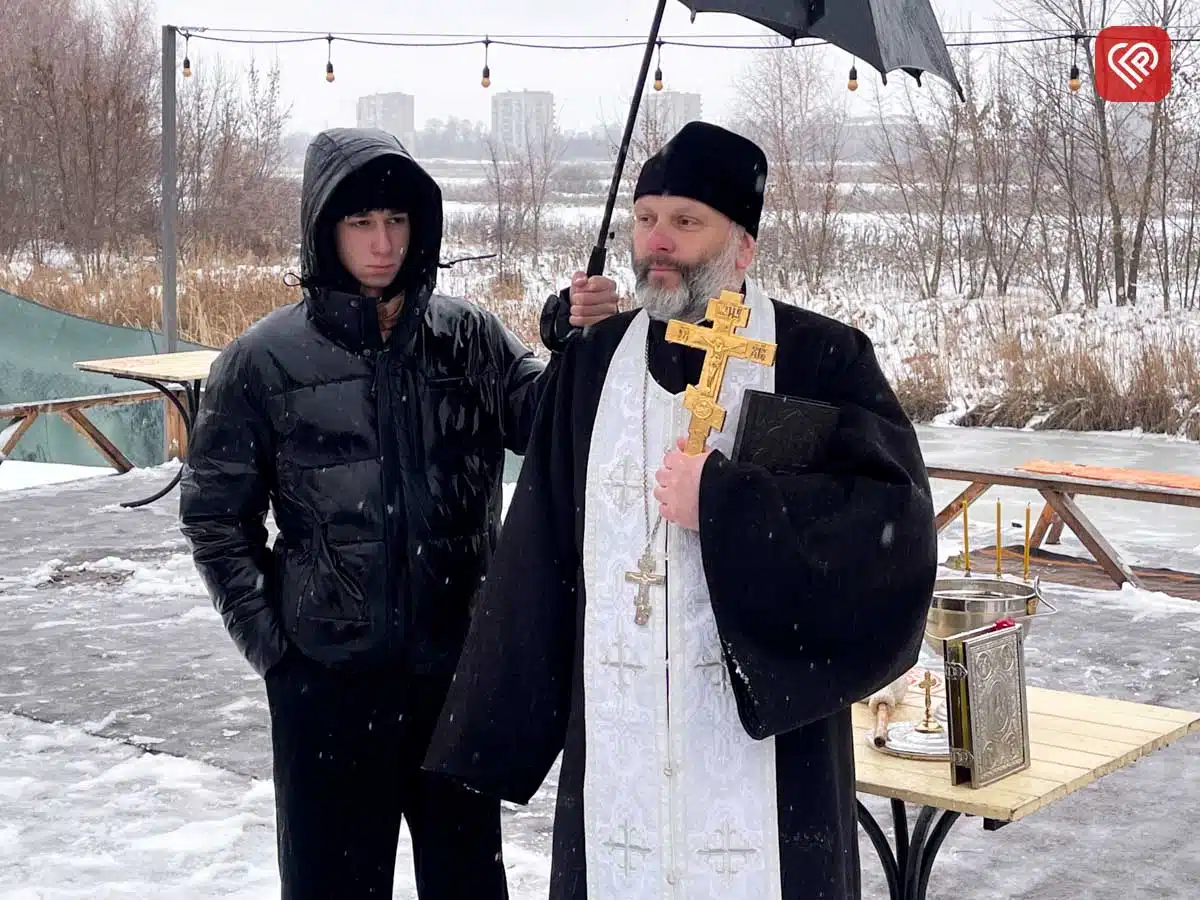 У кризі вирізали ополонку, а освячення води звершив священнослужитель Православної Церкви України – отець Михайло. Він звернув увагу і на незвичні погодні умови цього дня:
