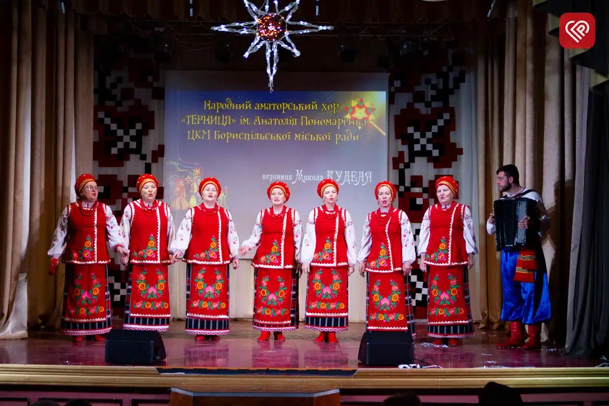 Народний аматорський хор «Терниця» ім. Анатолія Пономаренка Центру культури і мистецтв Бориспільської міської ради з піснями «Щедрівочка щедрувала», «Рай розвився» та «Сію редьку»
