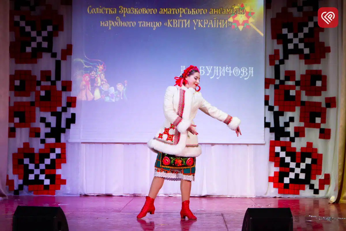 Солістка зразкового аматорського ансамблю народного танцю «Квіти України» Анна Буличова виконала хореографічну композицію «Коляда»