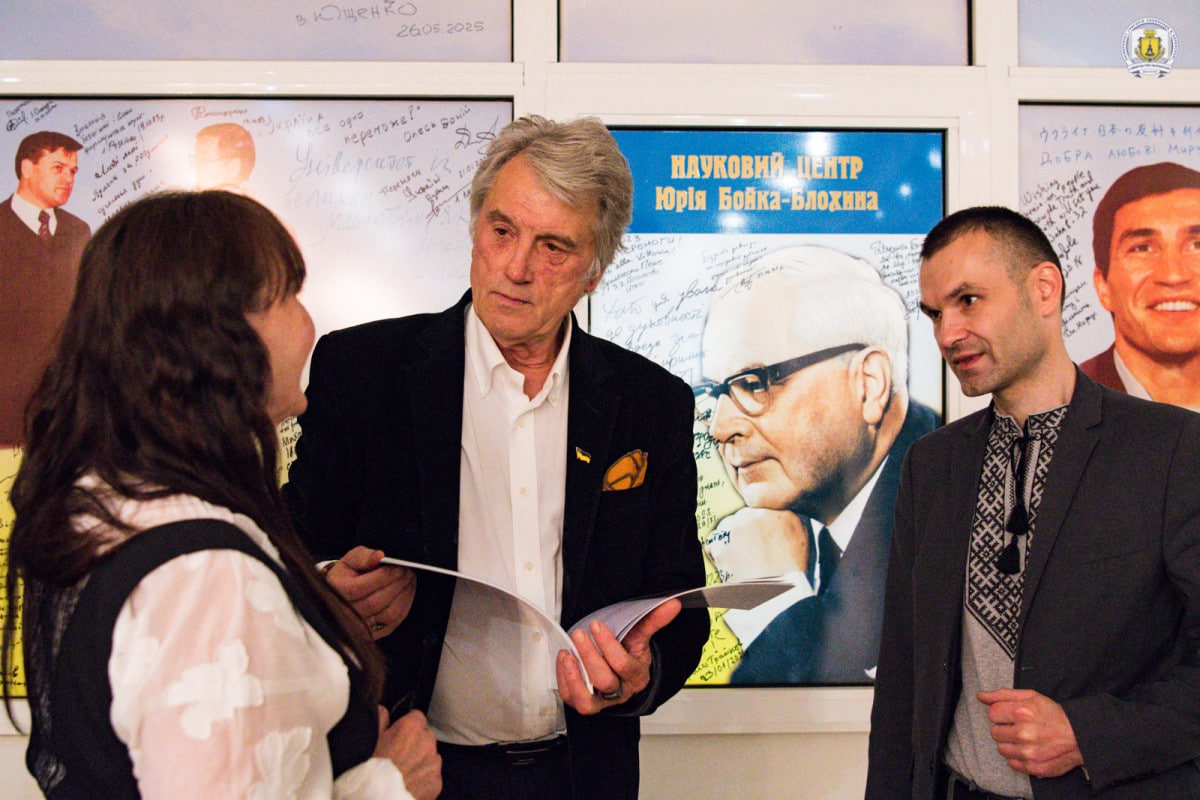Відкриваючи безпосередню зустріч, ректор УГСП Віталій Коцур підкреслив важливість приїзду Ющенка саме у воєнний час: