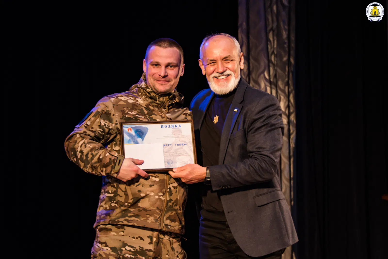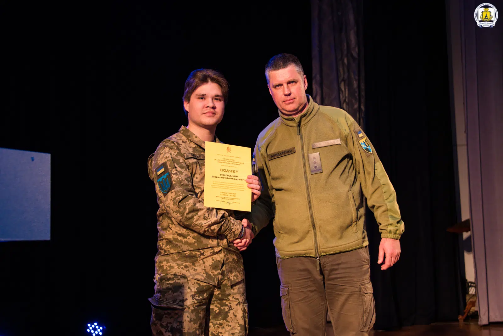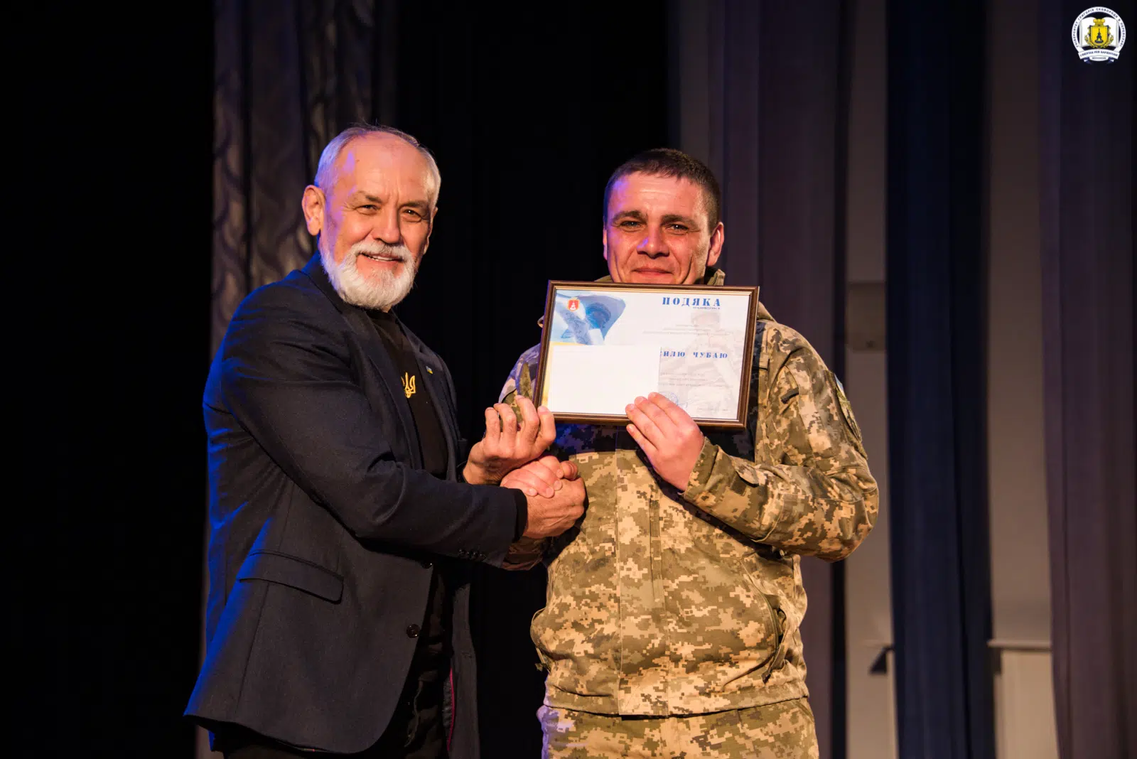 Грамоти університету з трактуванням «за самовіданну службу українському народу, захист суверенітету і територіальної цілісності України, високу професійну підготовку та з нагоди Дня українського добровольця», отримали такі добровольці: Горобченко Софія Анатоліївна, Дорошенко Олександр Миколайович, Канівець Катерина Олександрівна, Куліков Андрій Юрійович, Новородовський Валерій Вікторович, Ольховик Олександр Сергійович, Поляруш Роман Миколайович, Собецький Ростислав Володимирович, Шихов Петро Володимирович, Шпанюк Михайло Михайлович.
