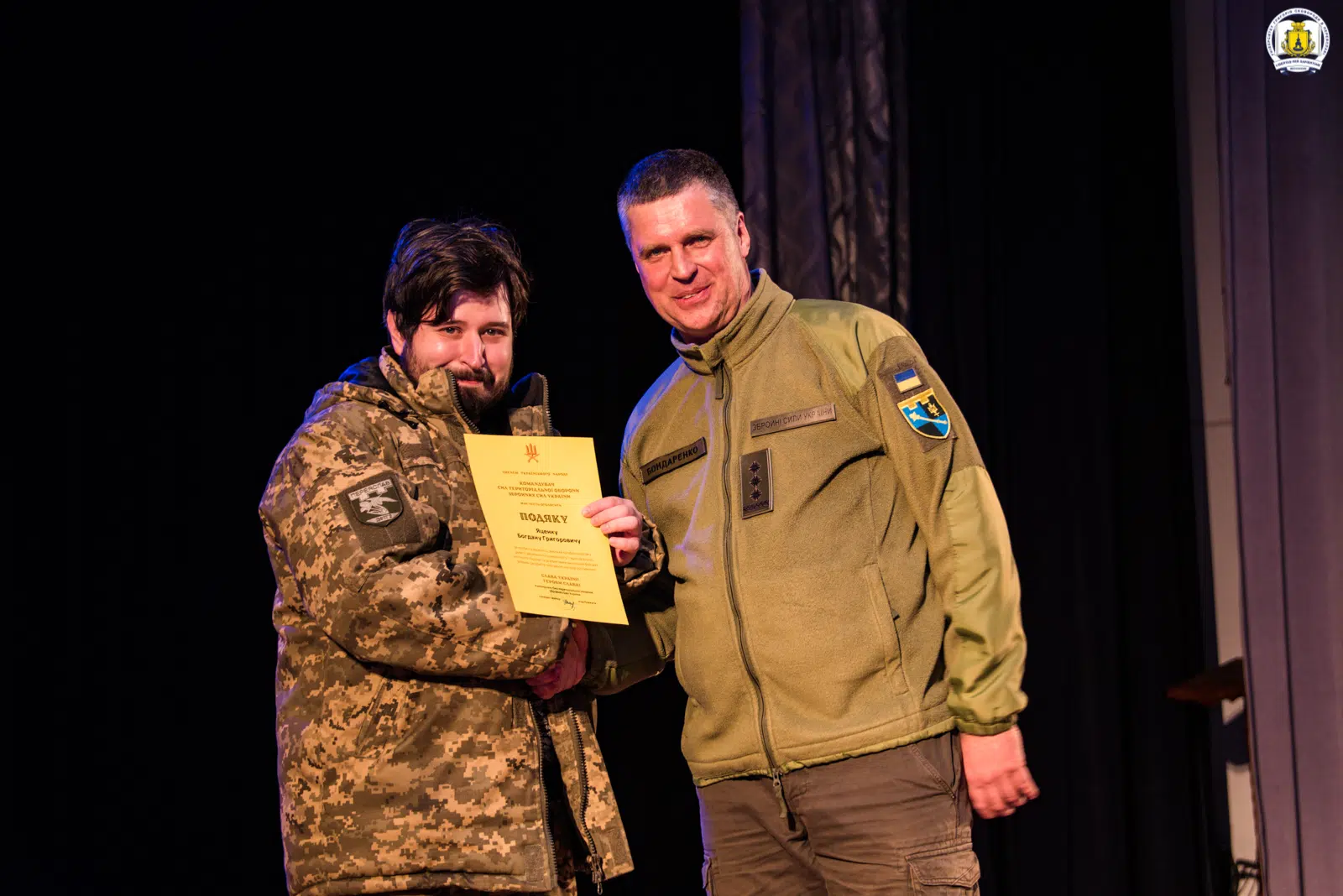 Від імені Університету Григорія Сковороди в Переяславі Віталій Коцур нагородив університетськими відзнаками «Орден Григорія Сковороди» добровольця 118 ОБр ТрО Олександра Митниа та командира Добровольчого формування Переяславської МТГ №2 ОлегаВорошиловського