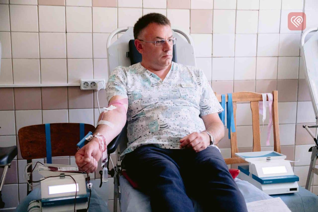 «Якщо ви не маєте якихось медичних протипоказань до здачі, то слід прийти у обласний центр служби крові або до його представників на виїзді, як от сьогодні у Переяславі, маючи при собі паспорт та ідентифікаційний код. Зранку слід легенько поснідати, але й тим, хто не потурбувався про сніданок, пропонують чай та печиво. У пункті здачі крові вам виміряють тиск, поцікавляться про самопочуття і от ви вже здаєте 450 мл. крові. Процес не є таким складним, як може здаватися на перший погляд і, можливо, не з найприємніших, проте в умовах війни усі розуміють вагу такого кроку – наша кров може врятувати чиєсь життя. Кров потрібна щодня як для порятунку українських воїнів, так і для мирних громадян, які страждають від агресії, розв’язаної російською федерацією», – каже Максим Левченко, який завітав до лікарні разом з колегами з Університету Григорія Сковороди в Переяславі, які вже не вперше командно долучаються кампанії та, навіть, у березні, приймали представників КНП «Київський обласний центр служби крові» у стінах альма-матер.