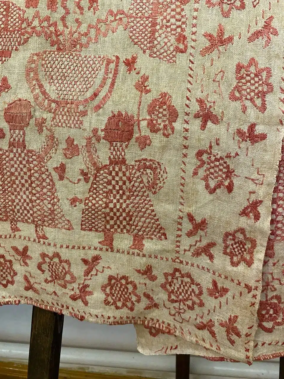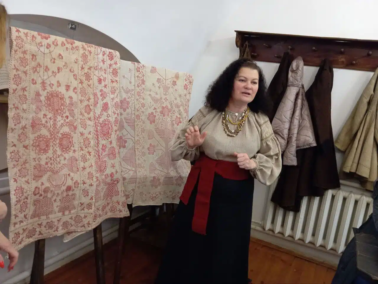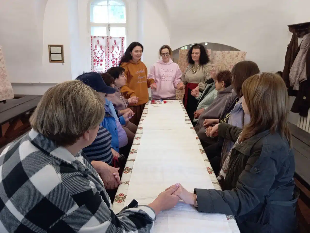 «Вишивання – це медитативна творчість, що заспокоює й допомагає відволіктися від болю. Ми взяли за основу традиційний рушник ХІХ століття з села Лецьки, що зберігається у фондах нашого заповідника. На ньому зображені дерево життя і дві жінки з квітами – це образ єдності поколінь. Через вишивку ми об’єднуємо не лише творчість, а й психологічну підтримку та щире, тепле спілкування».