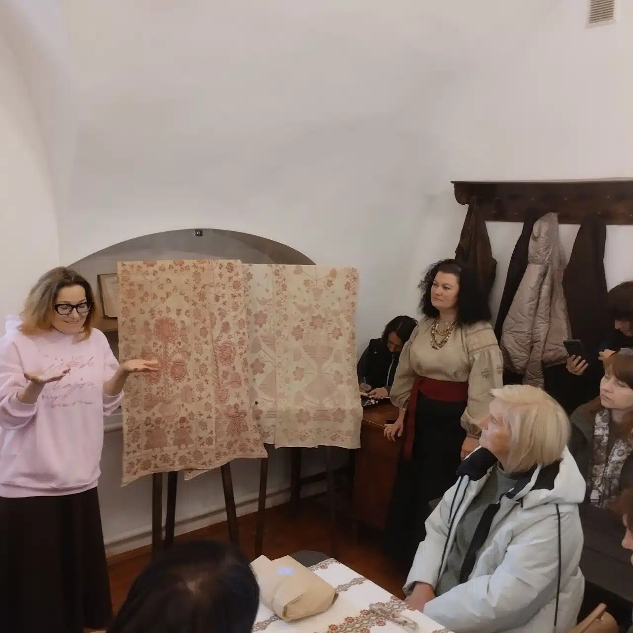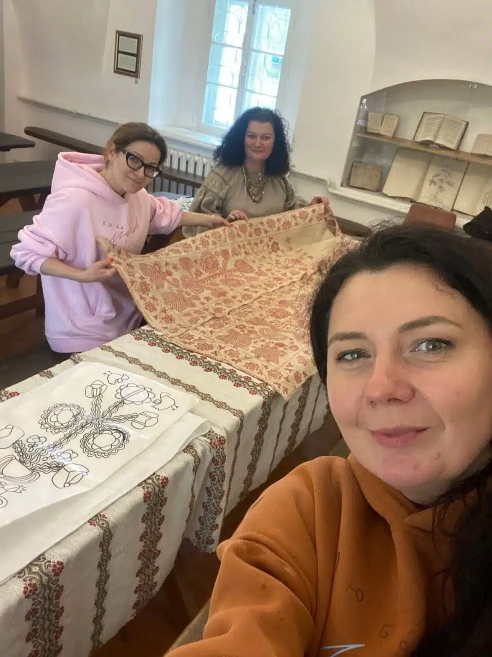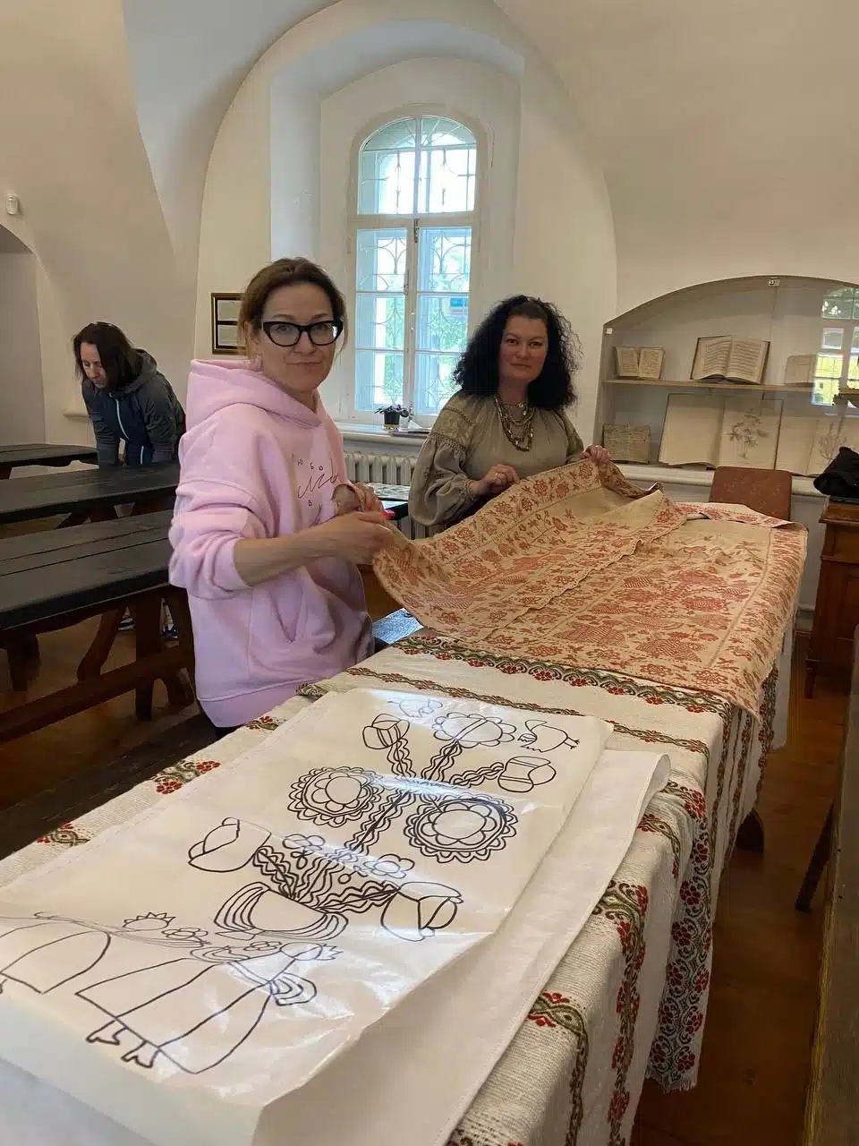 Тетяна Серебреннікова, яка очолює відділ краєзнавства Публічної бібліотеки імені Лесі Українки в Києві, має чималий досвід у реалізації схожих проєктів. Серед них – «Льолямарафон», «Оберегова вишита сорочка» та «Вишиті болем» – останній був створений для жінок, які зазнали сексуального насильства під час війни. Цим досвідом вона поділилася з майстринями Переяслава. Разом із посестрою, психологинею Ларисою Савчук, вони допомогли жінкам зробити перші стібки на рушнику.