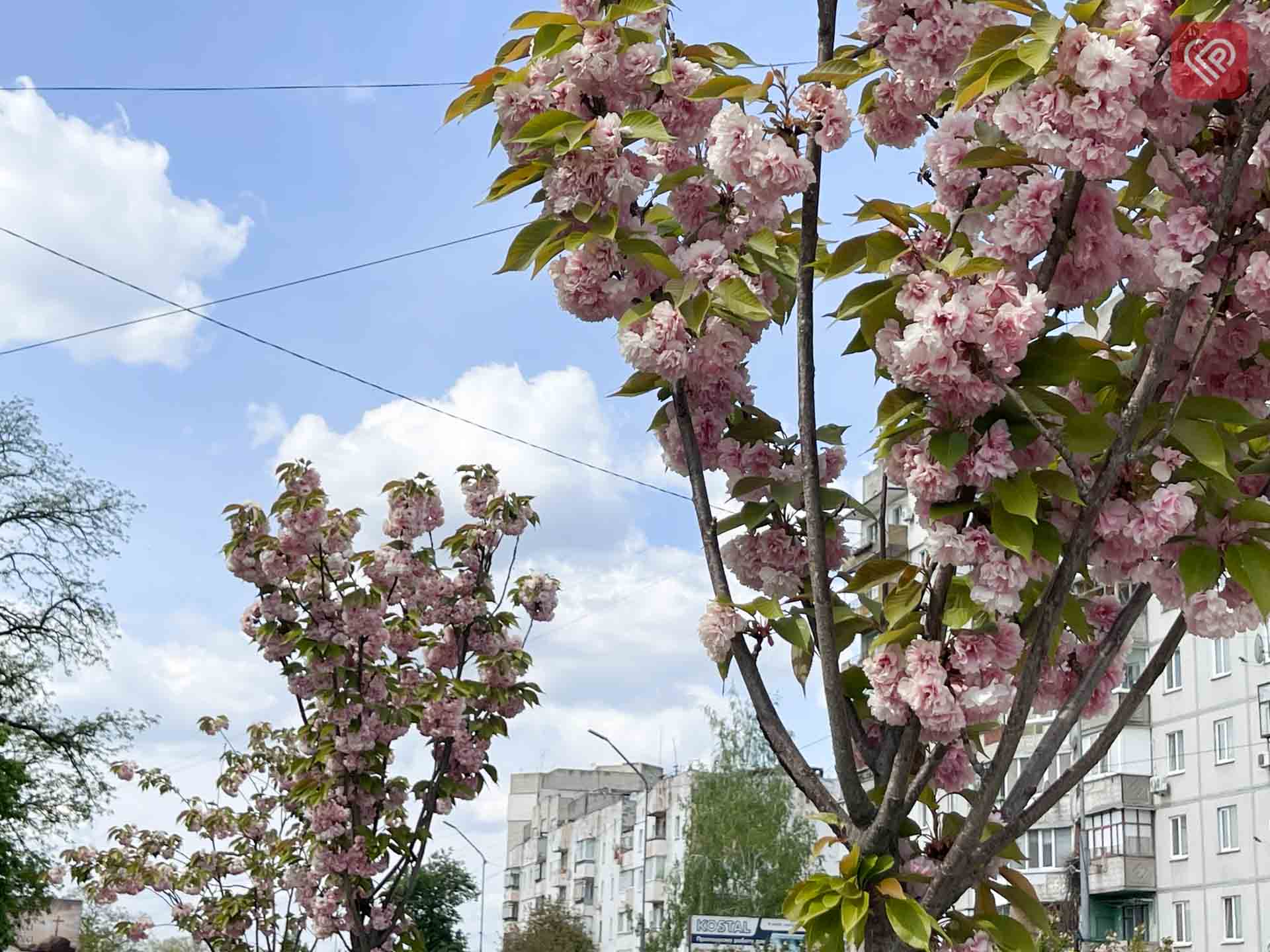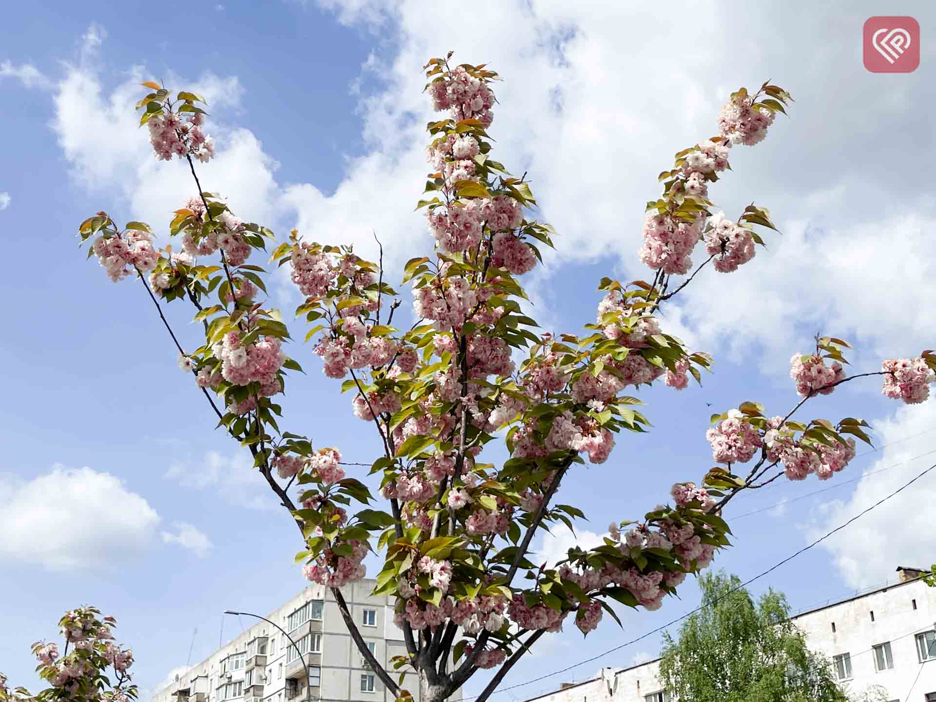 Вулицю Богдана Хмельницького у Переяславі прикрашають сакури сорту Канзан – це декоративне дерево з широкою кроною та густими махровими квітами ніжно-рожевого кольору. Цей вид особливо добре пристосований до міських умов: він стійкий до хвороб, адаптивний до клімату, не потребує надскладного догляду. А ще Канзан добре почувається в захищених від вітру місцях і при правильному догляді радує пишним цвітом вже з другого року життя.