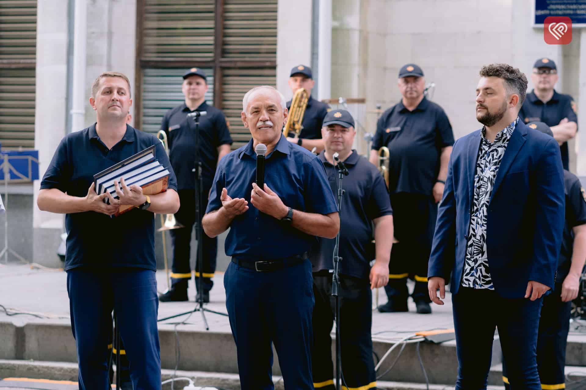«Від імені громади висловлюю слова вдячності усім працівникам ДСНС. Нехай голоси вашого оркестру ніколи не згасають а серця не знають втоми», – звернувся мер й закликав глядачів ще раз подарувати артистам оплески.