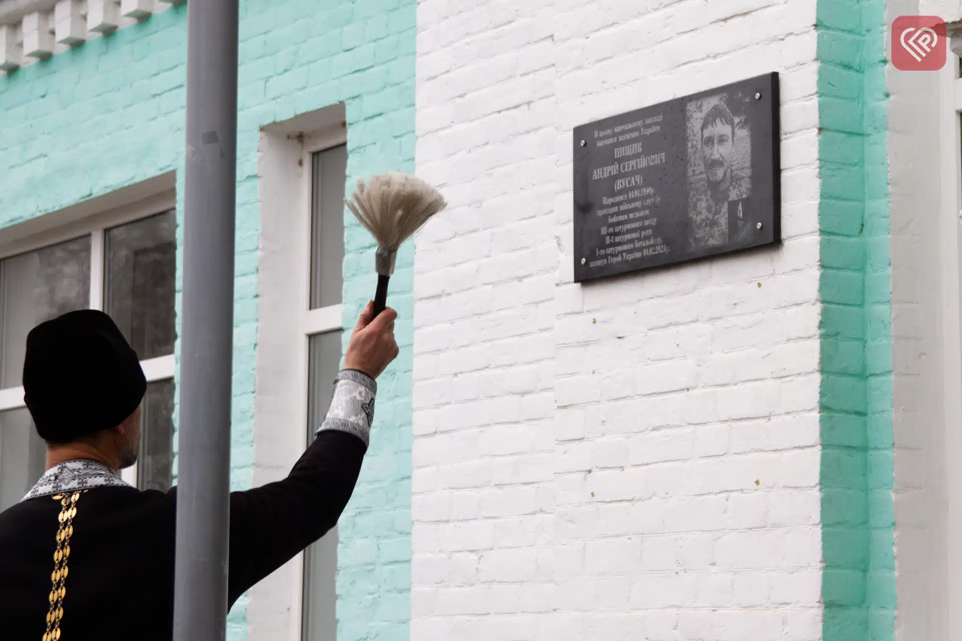 Меморіальну дошку на честь Андрія Пищика освятив протоієрей отець Іван Будняк
