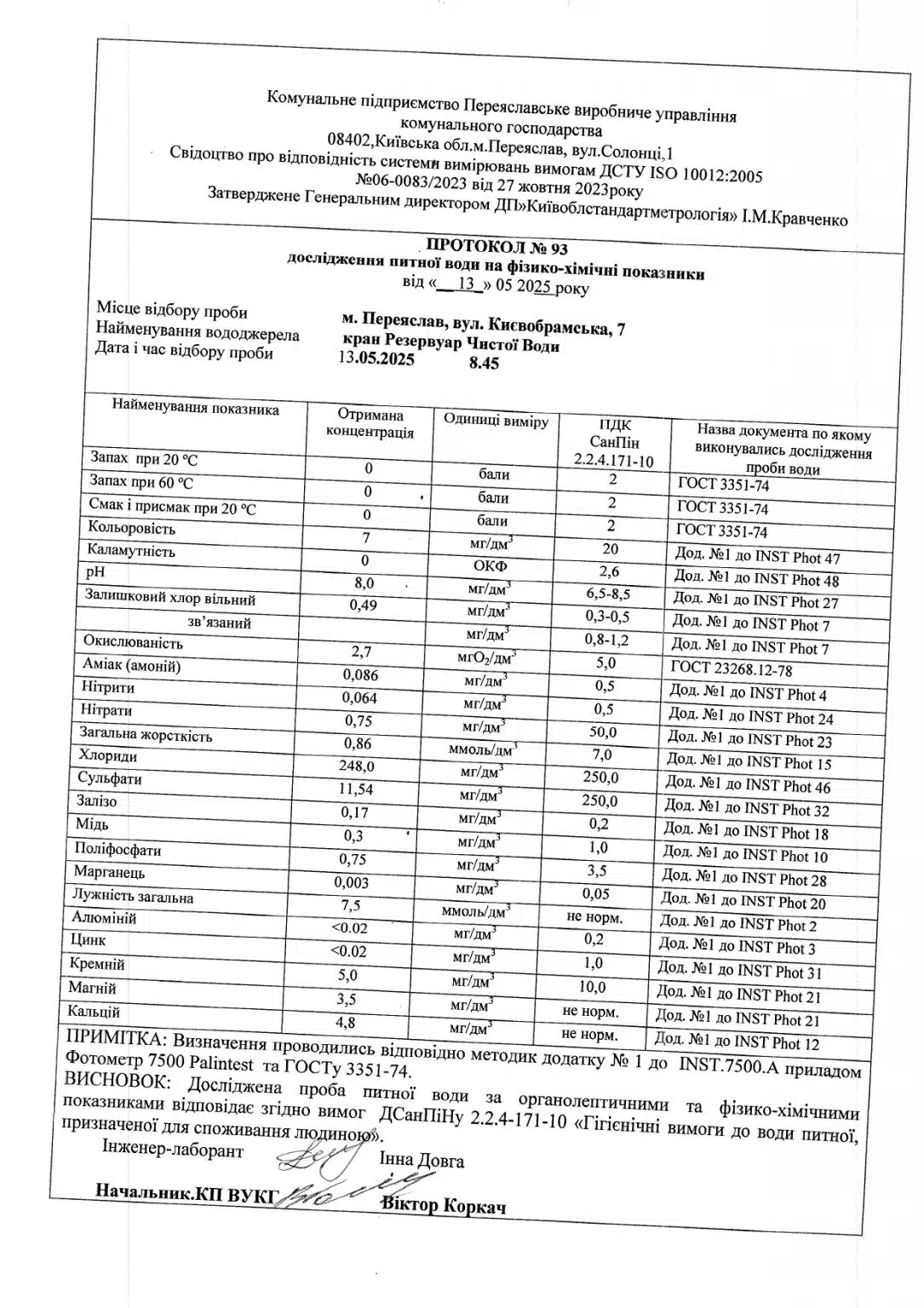 13 травня у Переяславі вчергове перевірили питну воду. Протокол дослідження передає Proslav з посиланням на офіційний сайт міськради.