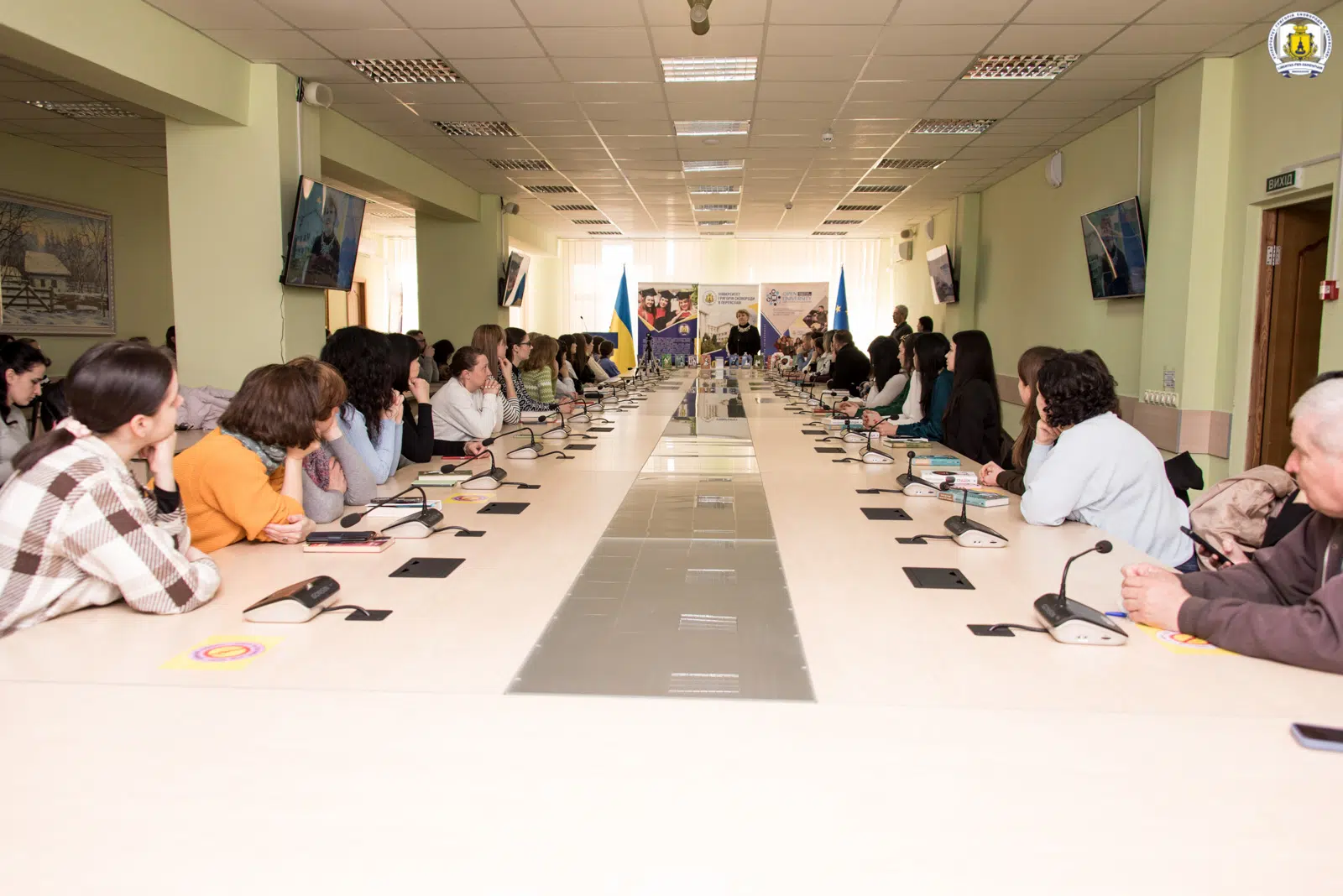 Під час екскурсії університетом ректор Віталій Коцур ознайомив письменницю з історією освітніх традицій нашого краю та його вікопомними традиціями. Уже в конференц-залі імені Василя Сухомлинського золоту письменницю України зустріли бурхливими оплесками.