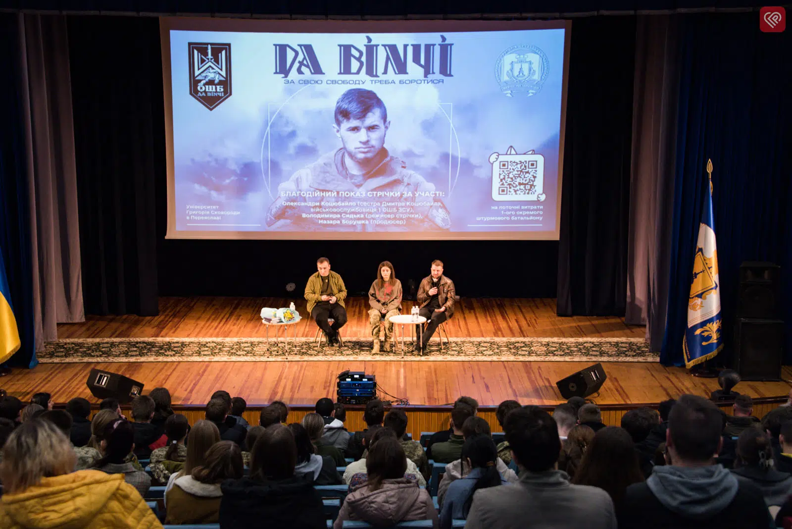 В актовій залі Університету Григорія Сковороди в Переяславі 12 березня відбувся благодійний показ документального фільму «Да Вінчі». Стрічка присвячена життю та боротьбі Дмитра Коцюбайла – Героя України, добровольця і командира штурмового батальйону, який став символом українського опору. Як все було бачив і журналіст Proslav.