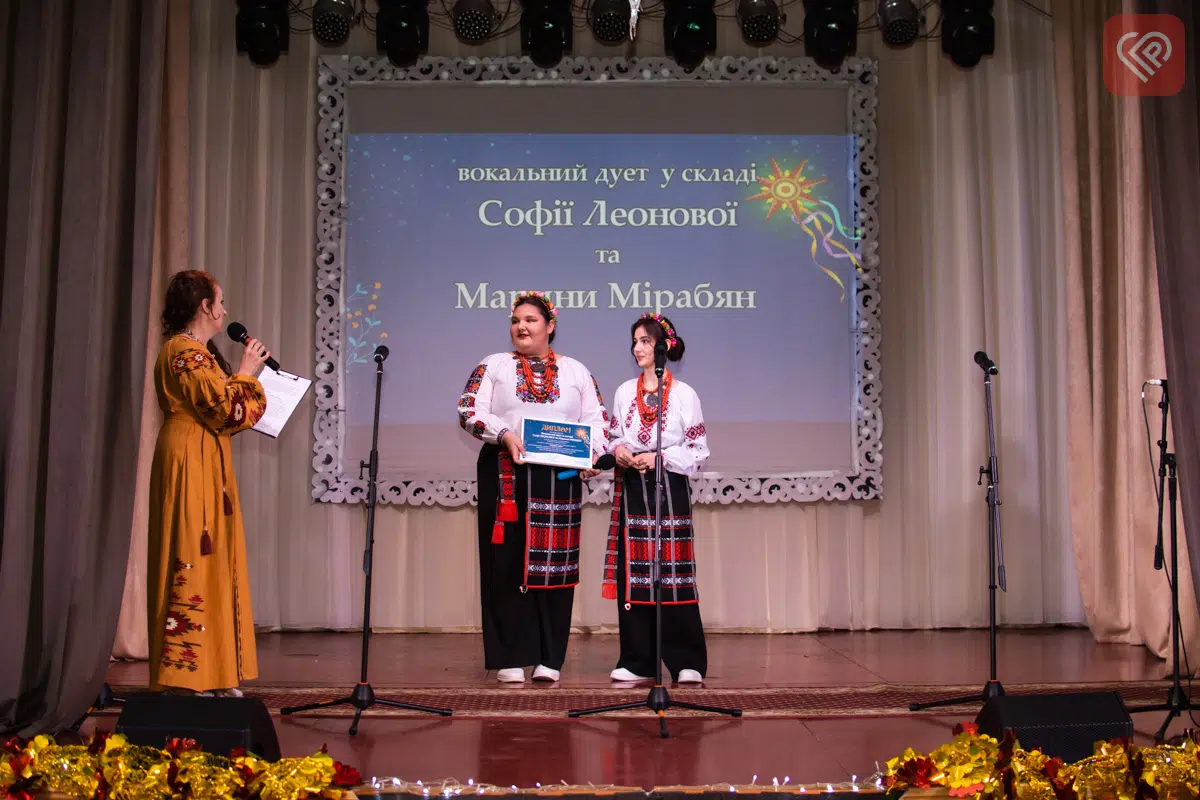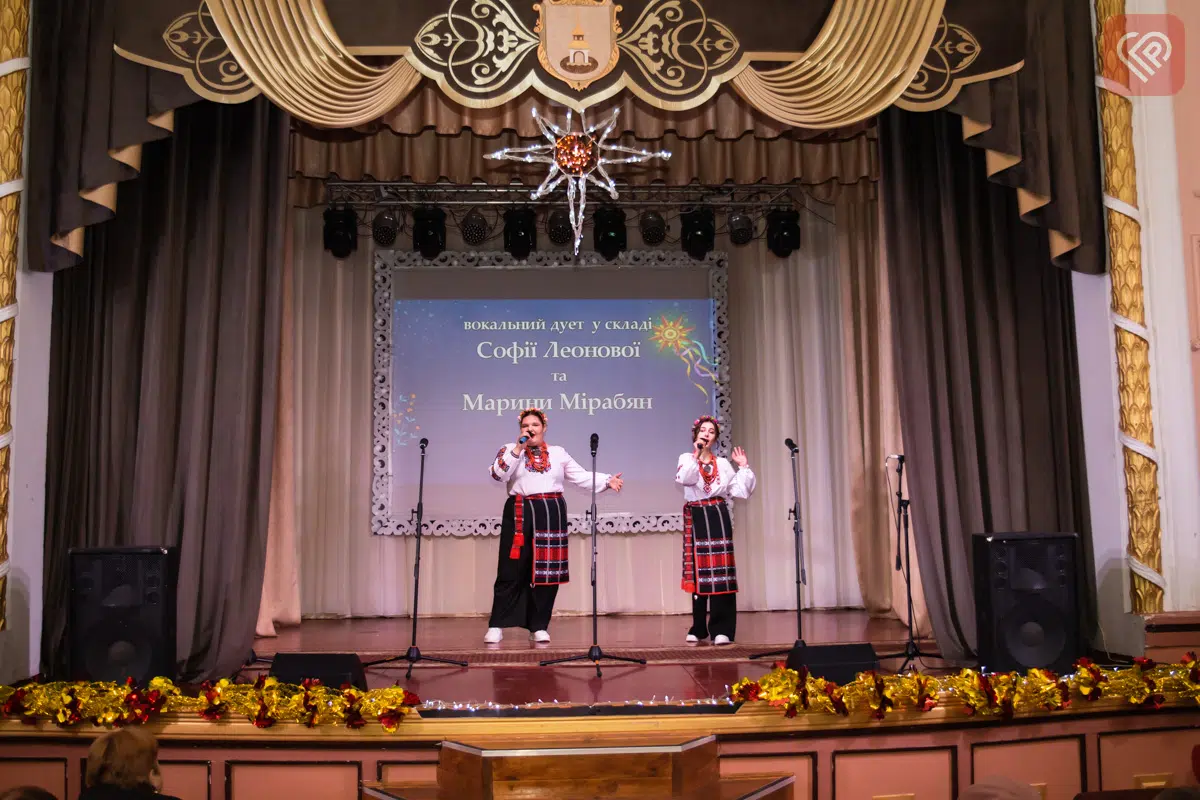 Вокальний дует в складі Софії Леонової та Марини Мірабян Академічного ліцею ім. І. Мазепи виконав «Попурі українських колядок»