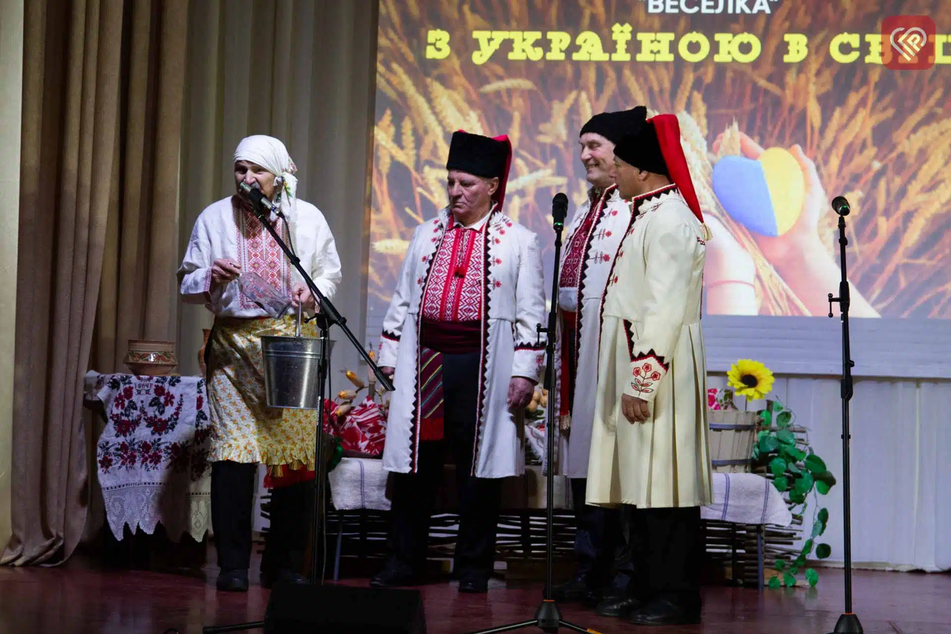 Артисти не просто співали народних пісень, а й підготували театралізовану сценку, що відтворювала український побут з неповторним гумором й танцями.