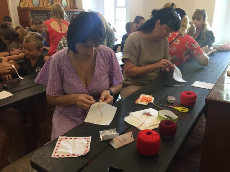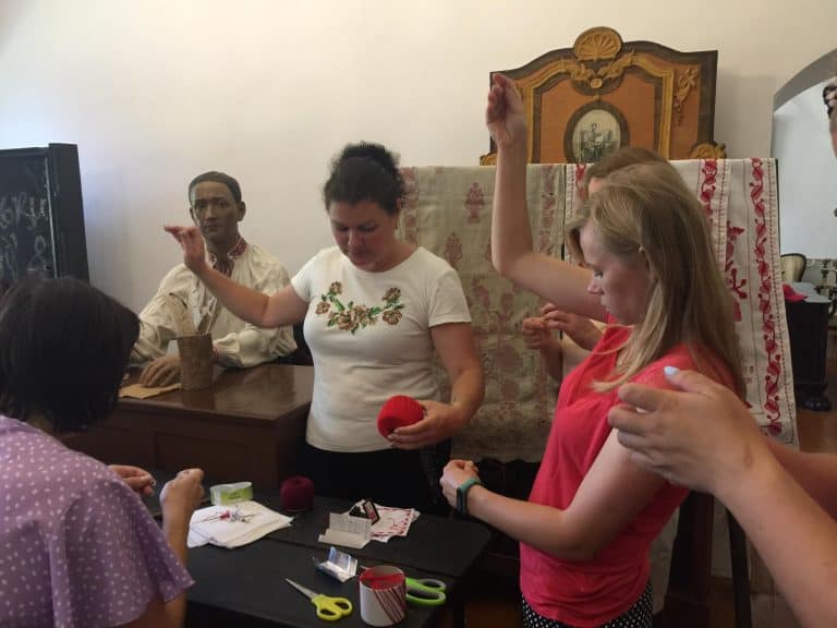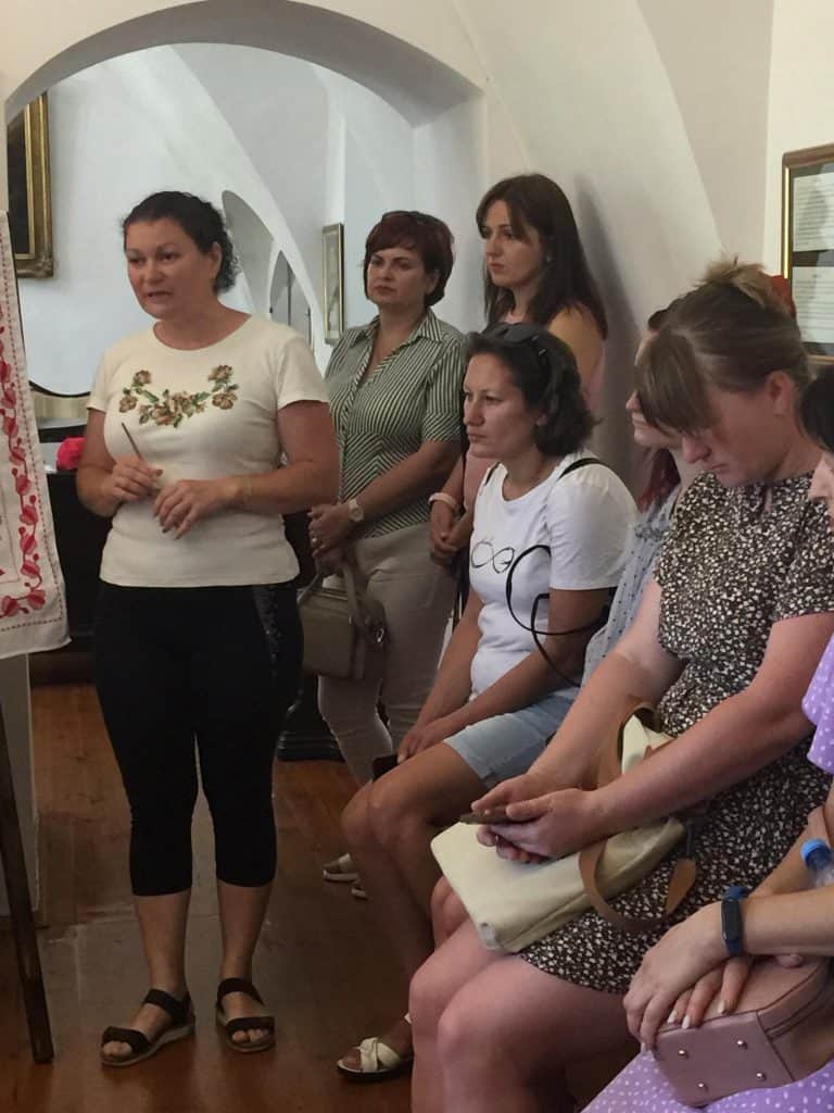 Окрім відвідування музею, для ВПО було проведено майстер-клас з відтворення стародавніх швів, які використовувалися у народних вишивках. Усі етапи заходу проводились завідувачкою Тетяною Радіоненко.