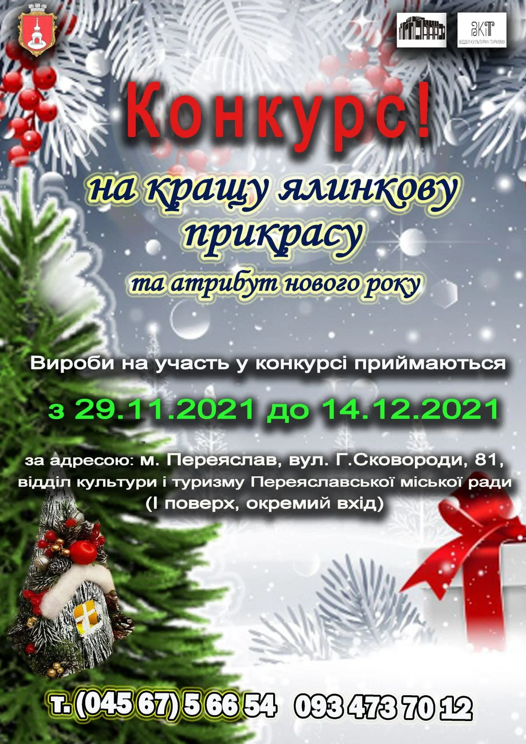 У рамках проведення підготовки до новорічно-різдвяних свят відділом культури і туризму Переяславської міської ради оголошується конкурс на кращі новорічні прикраси та атрибути нового року «Новорічний подарунок Переяславській громаді».
