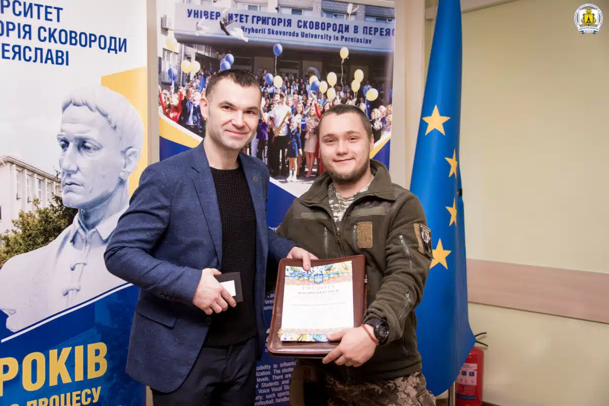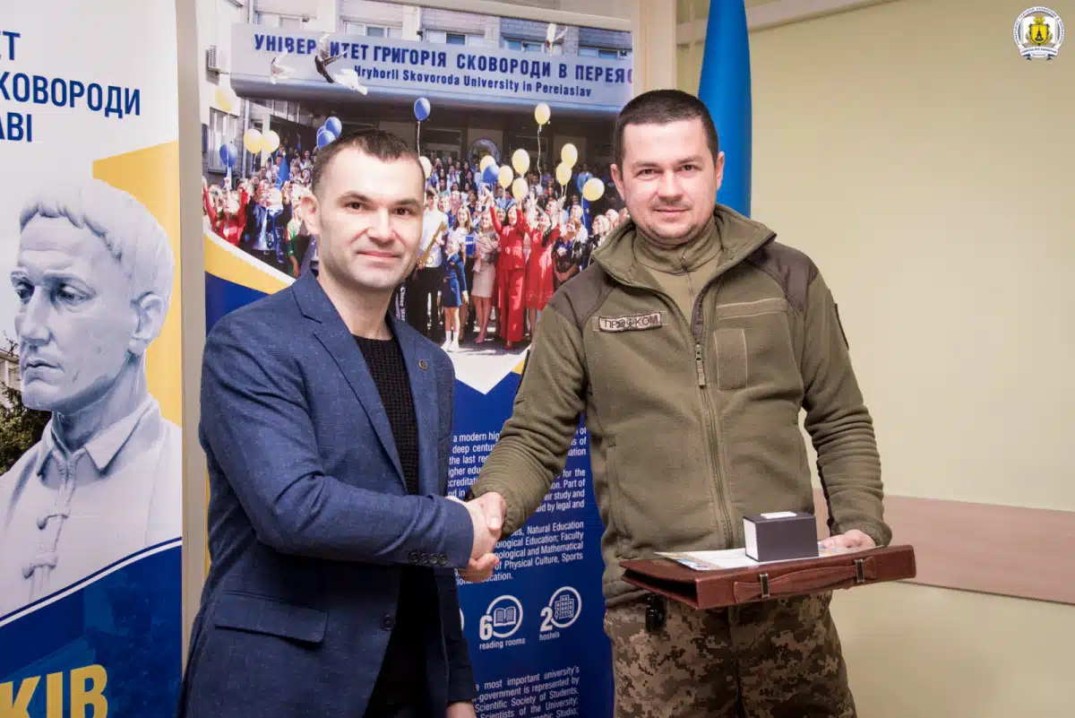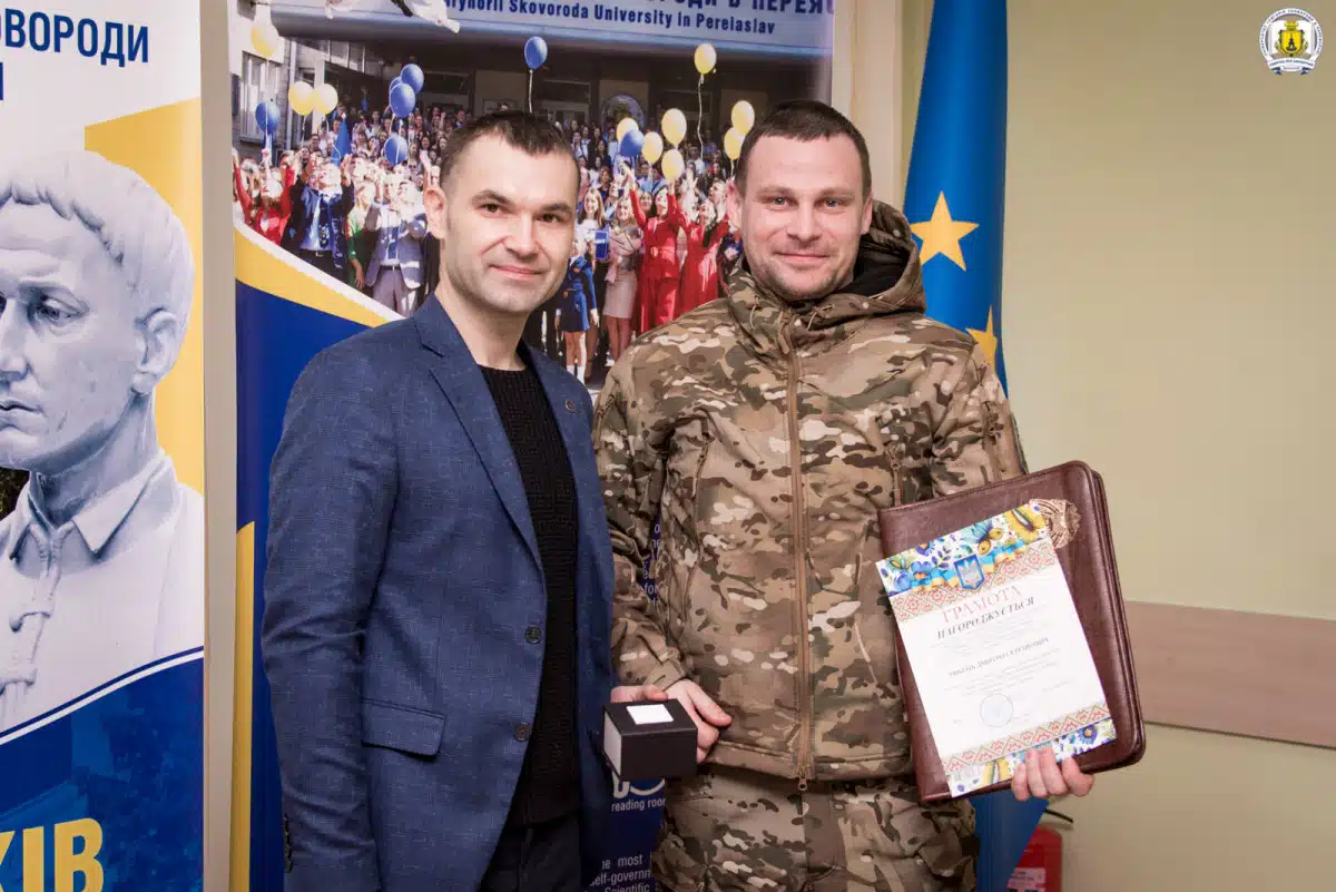 Повідомляється, що ректор університету, доктор історичних наук, професор Віталій Коцур відзначив внесок сковородинівців, серед яких студенти, викладачі та співробітники університету, в обороноздатність України та Київщини. За ініціативи ректора, бійців, які знищили від одного до п’яти таких дронів, нагородили грошовими преміями в розмірі 2000 гривень.