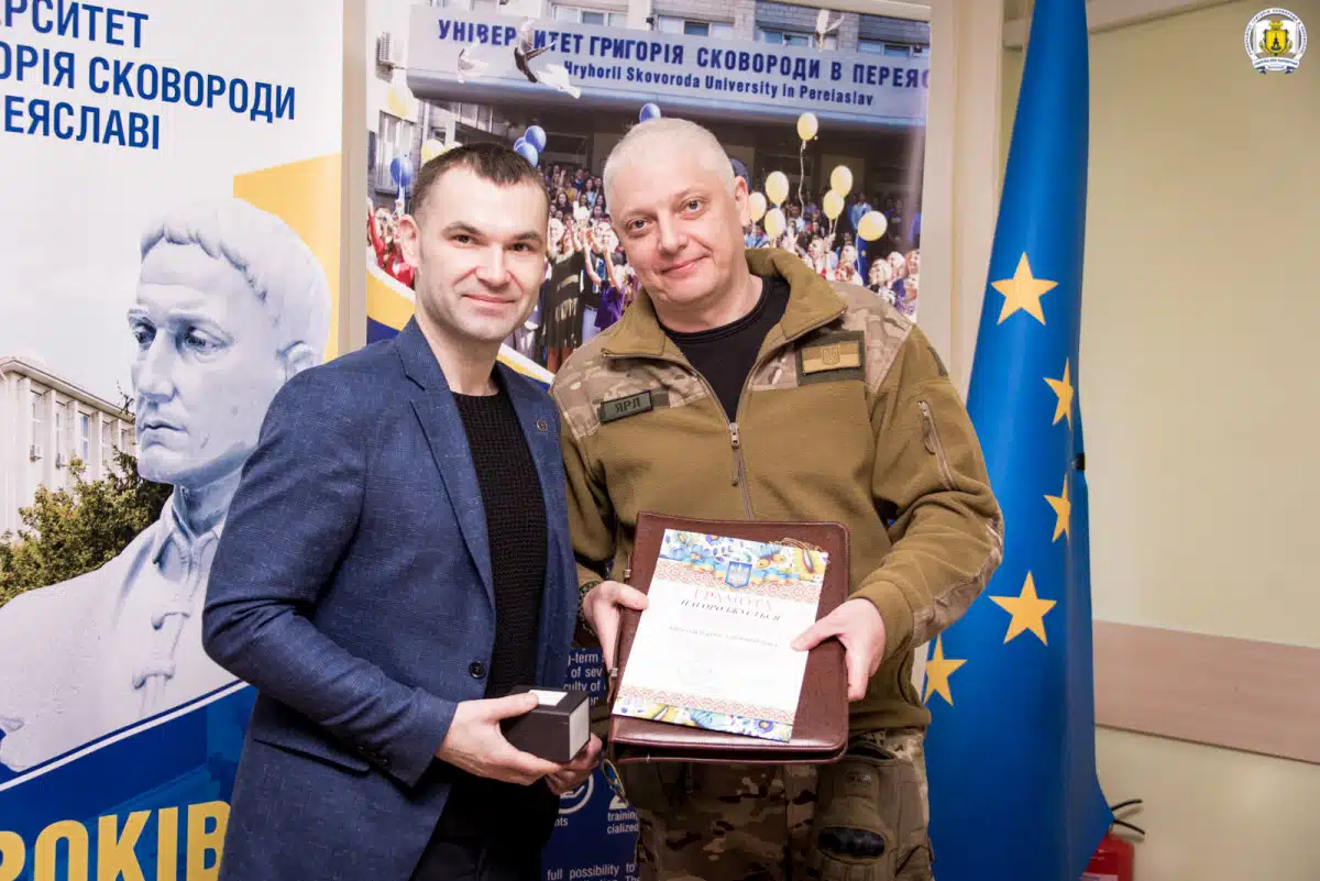 З нагоди Дня Соборності України в Університеті Григорія Сковороди в Переяславі відбулася урочиста церемонія нагородження членів Добровольчого формування Переяславської громади №2. Бійців, які збили ворожі безпілотники типу «Shahed», нагородили преміями, передає Proslav з посиланням на сайт університету.