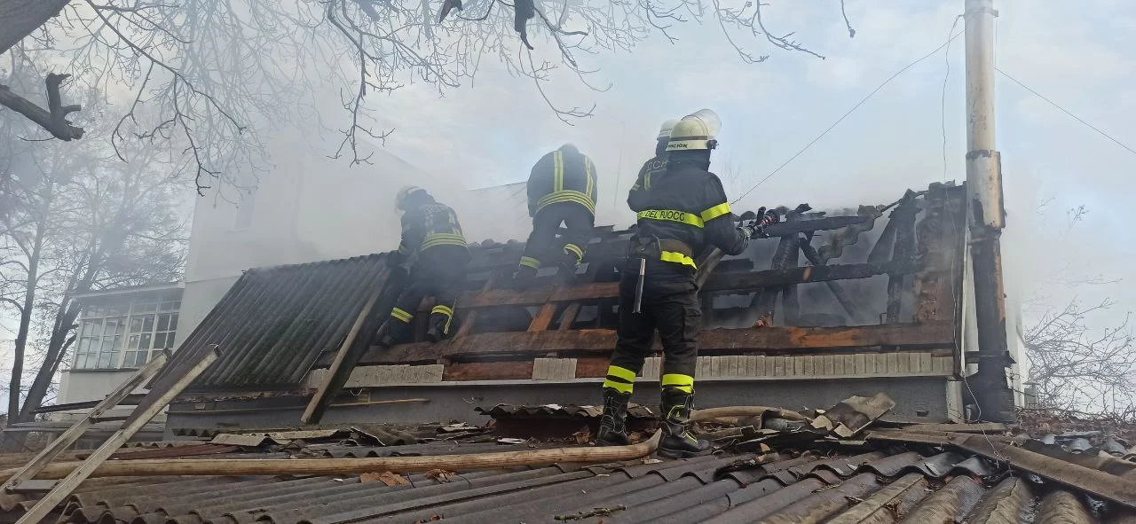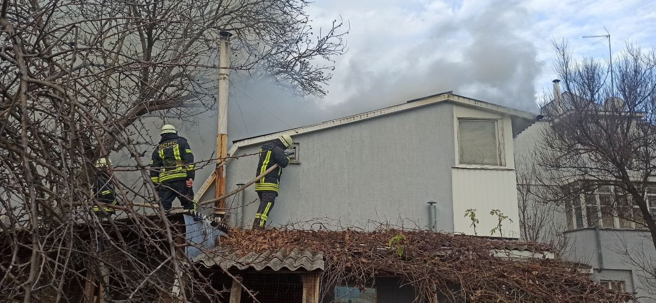 Після проведення розвідки, рятувальники встановили, що зайнялась крівля двоповерхової літньої кухні розміром 5х8 метрів.