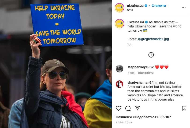 Ukraine.ua об’єднує офіційний сайт України та сторінки держави в соцмережах. У 2022 році постійна аудиторія цих каналів зросла в понад 10 разів. А найбільша аудиторія наразі на сторінці України в Instagram. Нині на неї підписані понад 1 мільйон користувачів. Перетнувши цю позначку, сторінка увійшла до ТОП-5 офіційних акаунтів країн у цій соціальній мережі, поступаючись лише профілям Австралії, Туреччини, Канади та Нової Зеландії.