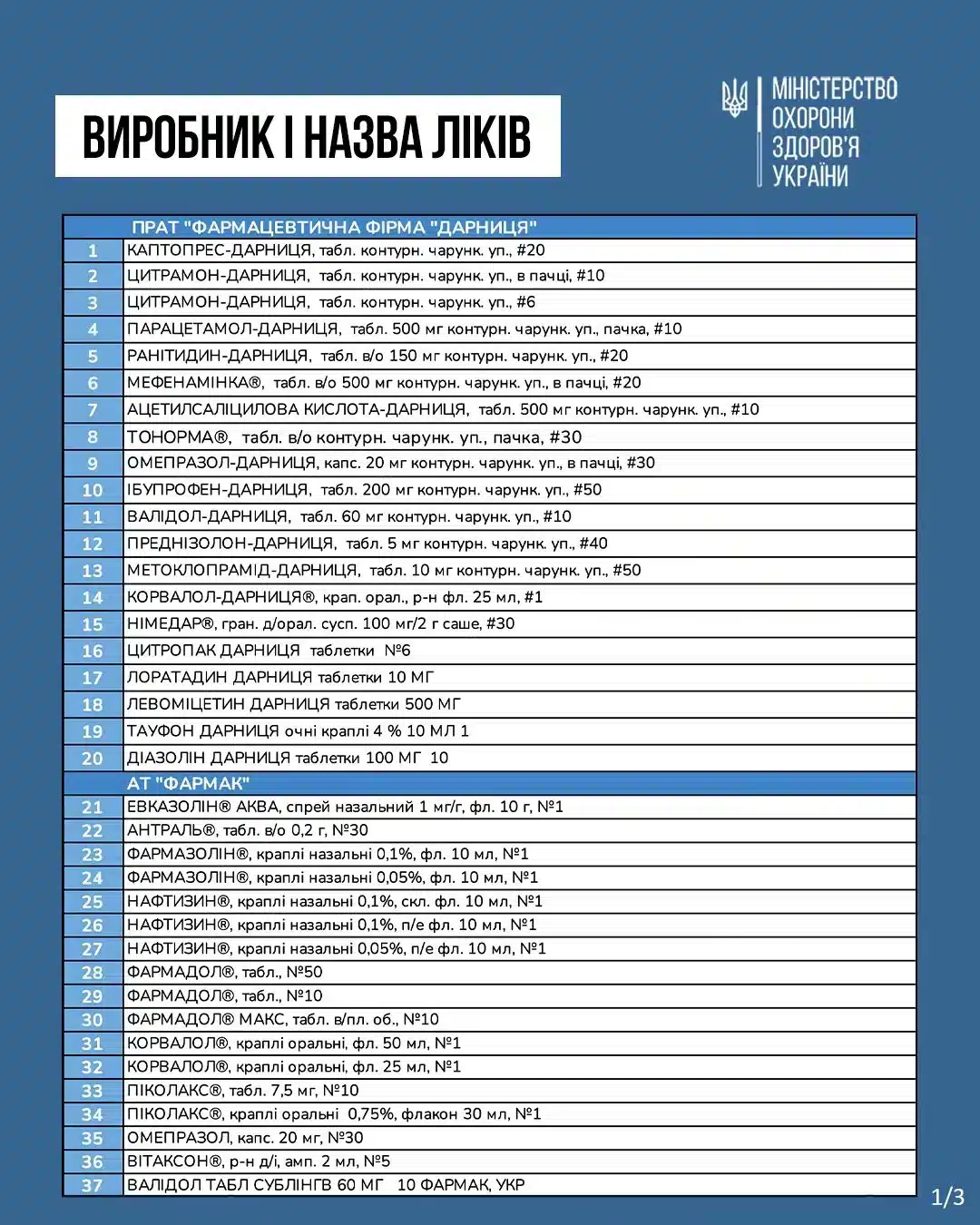 До переліку увійшли препарати від провідних українських фармкомпаній: