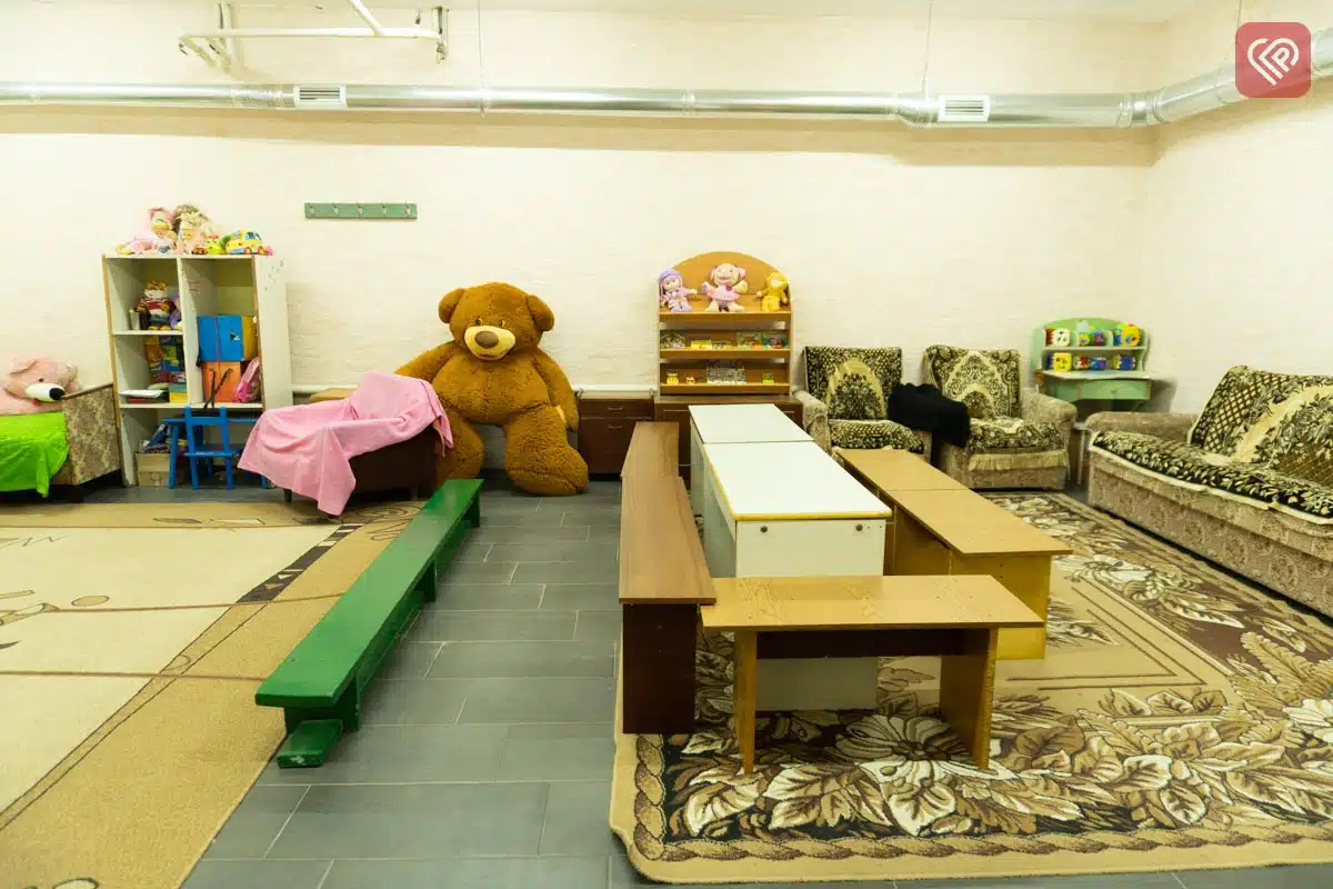 Укриття дитсадка «Сонечко» розраховане на всіх вихованців. Тут є дев’ять мебльованих кімнат із ігровим інвентарем, медпункт, роздільні туалети для хлопчиків і дівчаток, а також система обігріву й вентиляції.