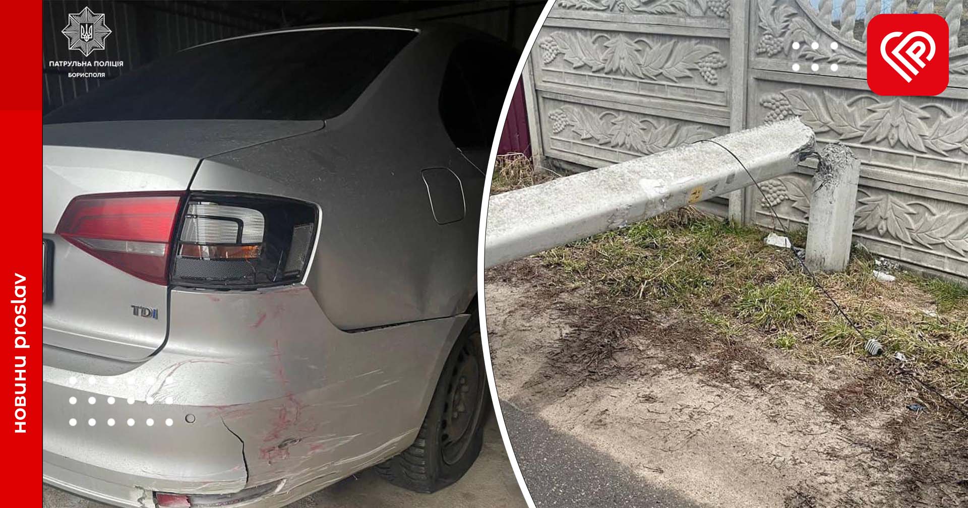 Згідно з повідомленням Патрульної поліції Борисполя, учора, близько 17-ї години, на службовий планшет патрульні отримали виклик про ДТП без травмованих. Прибувши на місце події, поліцейські зустрілися із заявником, який повідомив, що водій Volkswagen Jetta здійснив наїзд на електроопору та втік з місця пригоди.
