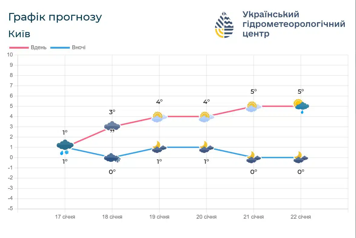 Температура вночі по області опуститься від 2° тепла до 3° морозу, однак вдень повітря прогріється до 1-6° тепла. У Києві вночі буде близько 0°, у денні години термометри зафіксують 3-5° тепла.