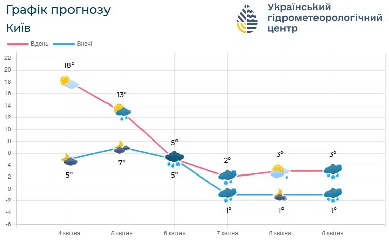 Фото: графік прогнозу погоди на Київщині з 4 по 9 квітня / Український гідрометцентр