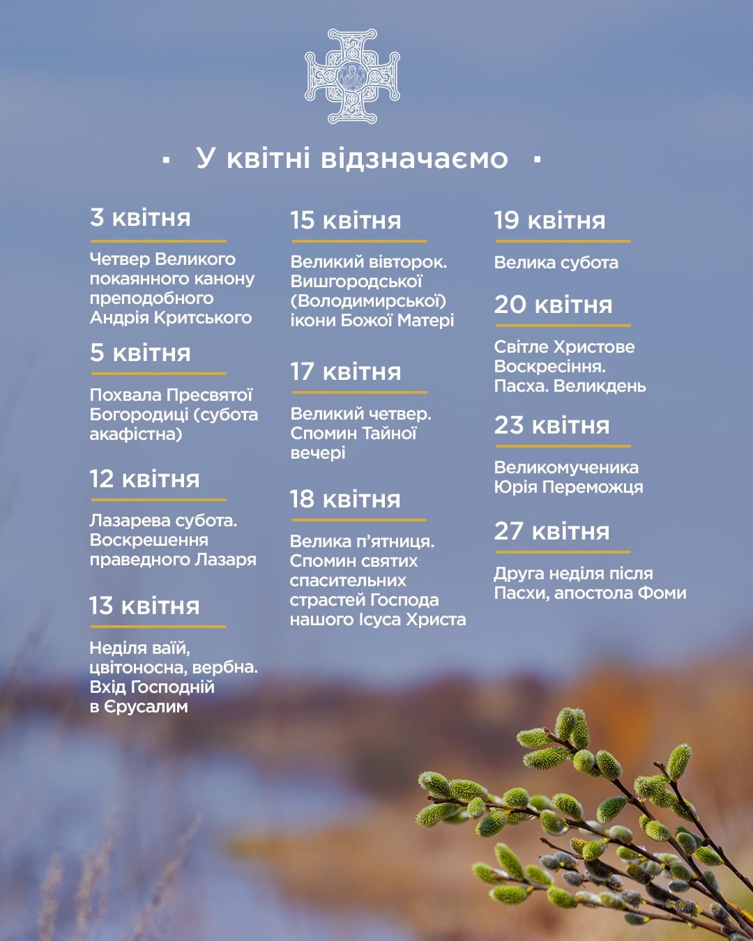 Proslav » Новини » Вербна неділя, Великдень та інші знаменні дати і свята: церковний календар на квітень