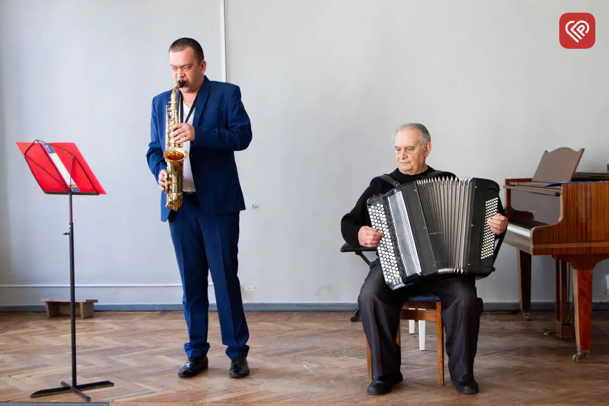 Яскравим фінальним акордом свята був виступ справжніх віртуозів, професійних музикантів і наставників школи. Неперевершений дует у складі Юрія Дебеляка (баян) та Вадима Ноздровського (саксофон) подарував глядачам композиції Рішара Гальяно «Танго» та Річарда Беннета «Siesta», зірвавши щирі оплески залу.