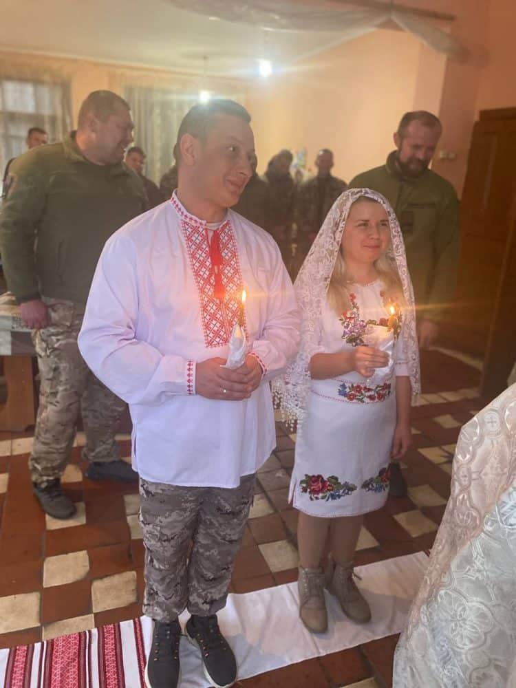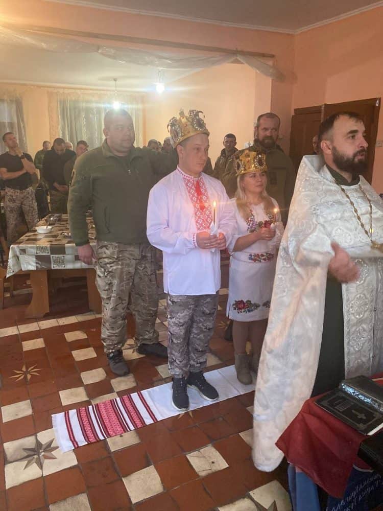 Як завжди, привіз їм гуманітарну допомогу від земляків. І одразу приступив до прямих обов’язків: виконав дуже приємну місію – поєднав закохані серця, провівши обряд вінчання просто на передовій.