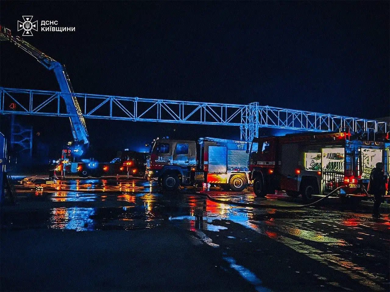 Рятувальники розповіли, що 20 грудня о 00:50 внаслідок чергової ворожої атаки безпілотників на території Бориспільського району сталося загоряння складського приміщення площею 15 000 м².