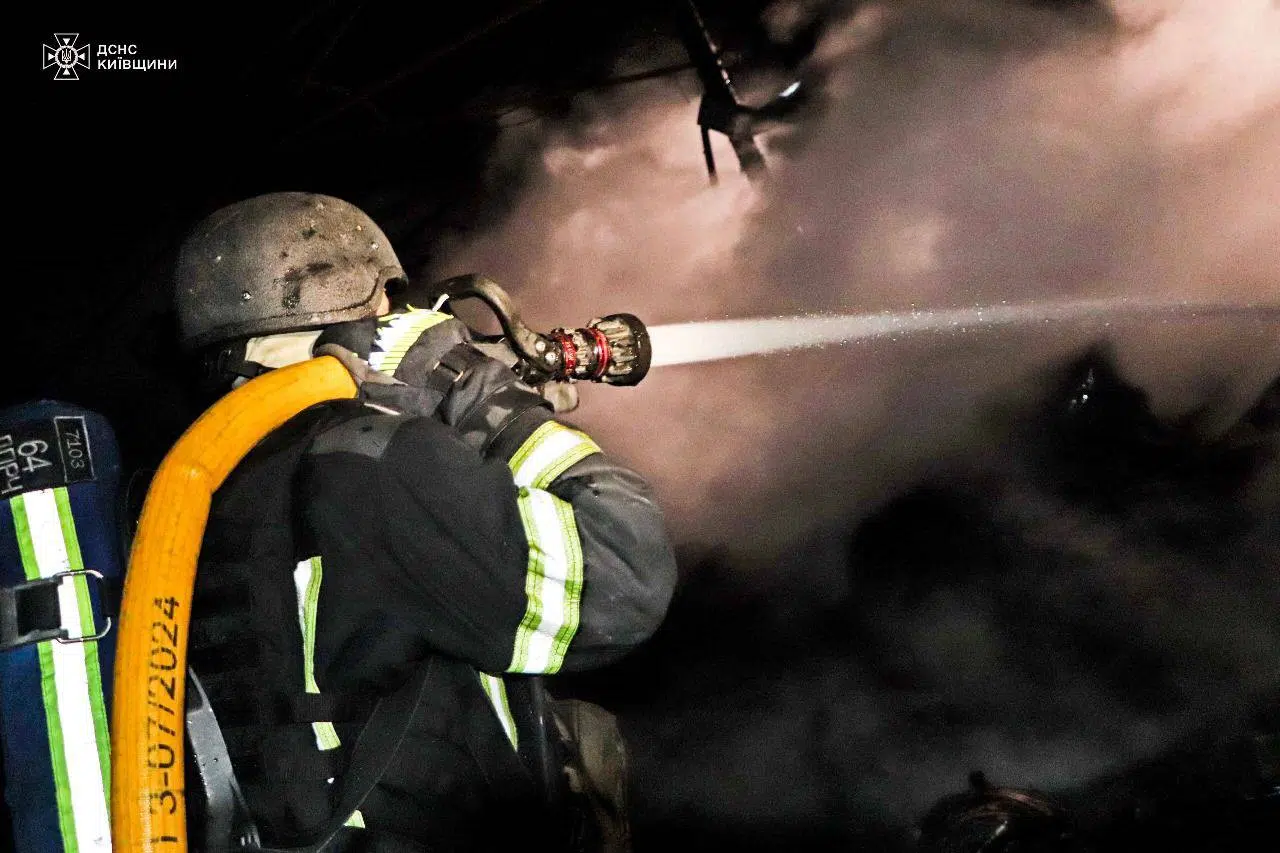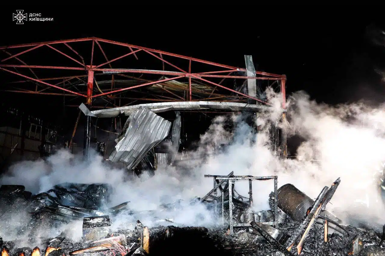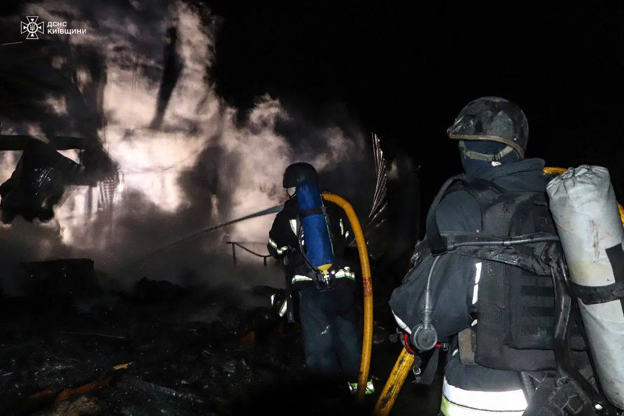 У наслідок ворожої атаки у Фастівському та Бориспільському районах сталося загорання складських приміщень. Пожежі ліквідовані.