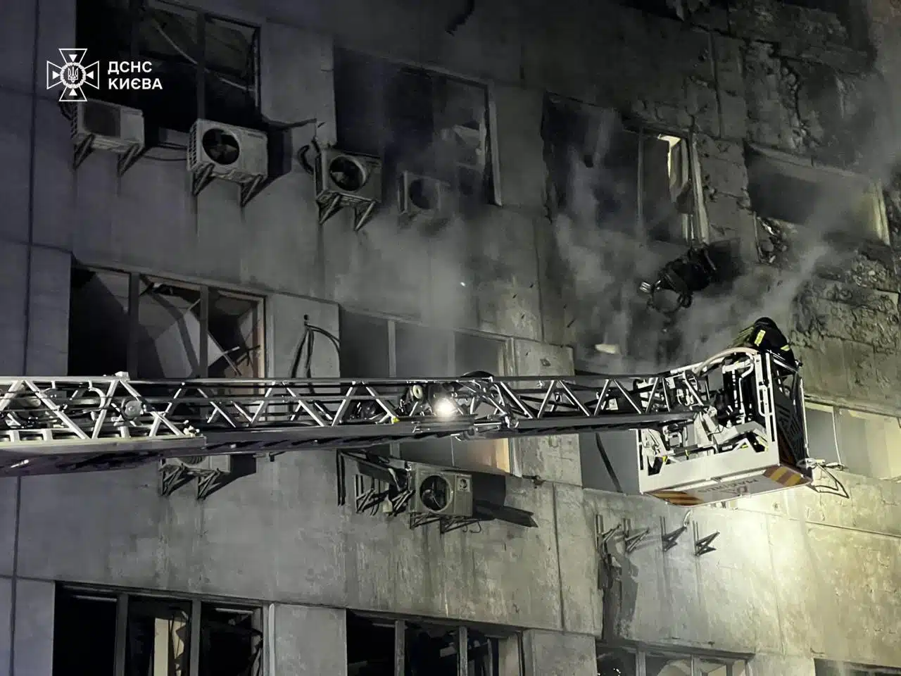 Також у Солом’янському районі внаслідок падіння уламків виникло загоряння у 8-поверховій адміністративній будівлі, пожежу ліквідували, зазначили у ДСНС.