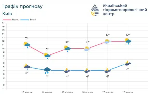 У період з 14 по 18 жовтня на Київщині та в столиці збережеться прохолодна, по-осінньому волога погода, повідомляє Український гідрометцентр.