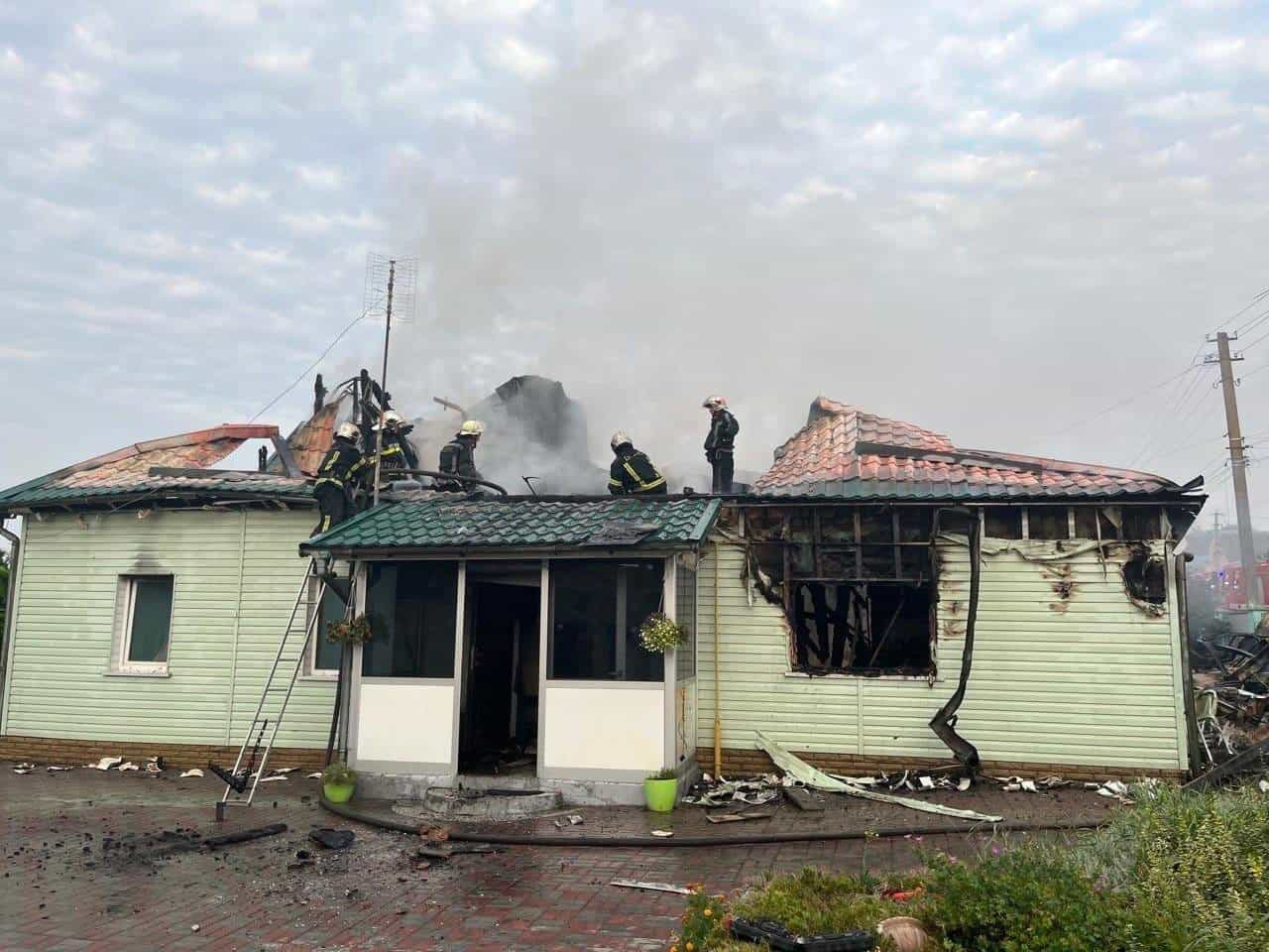 Руйнувань зазнали і гаражні приміщення. Знищено два авто. Падіння уламків російської ракети виявили також на території кладовища, де сталося займання, яке вдалося оперативно загасити працівникам ДСНС.