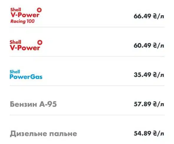 На АЗС Shell ціна такого виду палива продається за 35,49 грн/л. На автозаправних станціях KLO водіям доводиться віддавати по 35,79 грн /л.