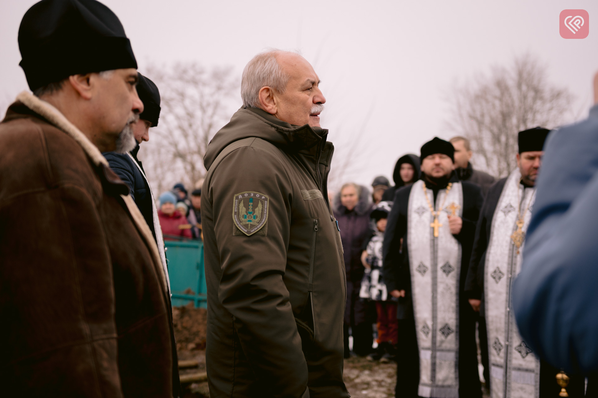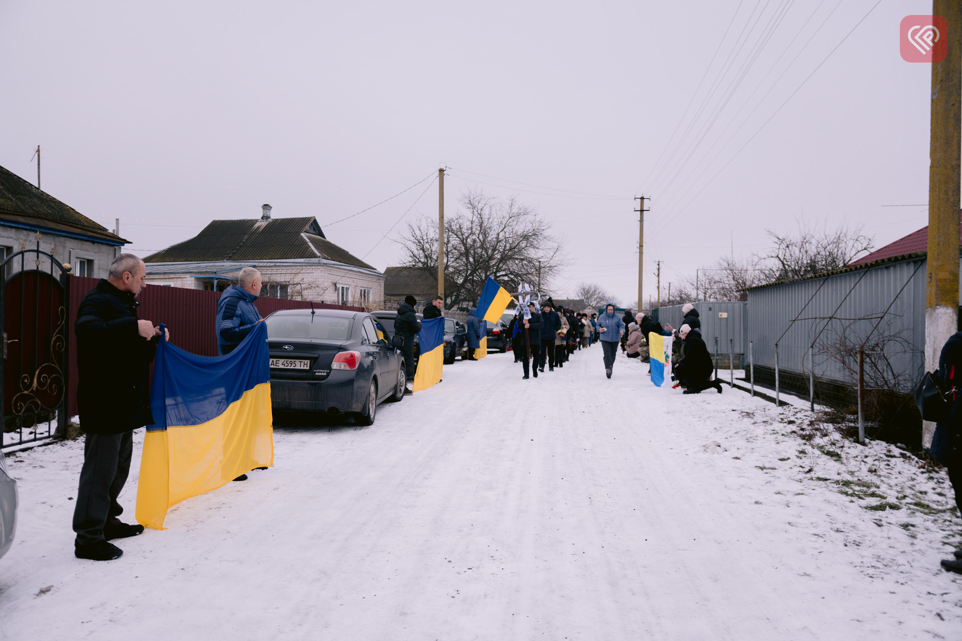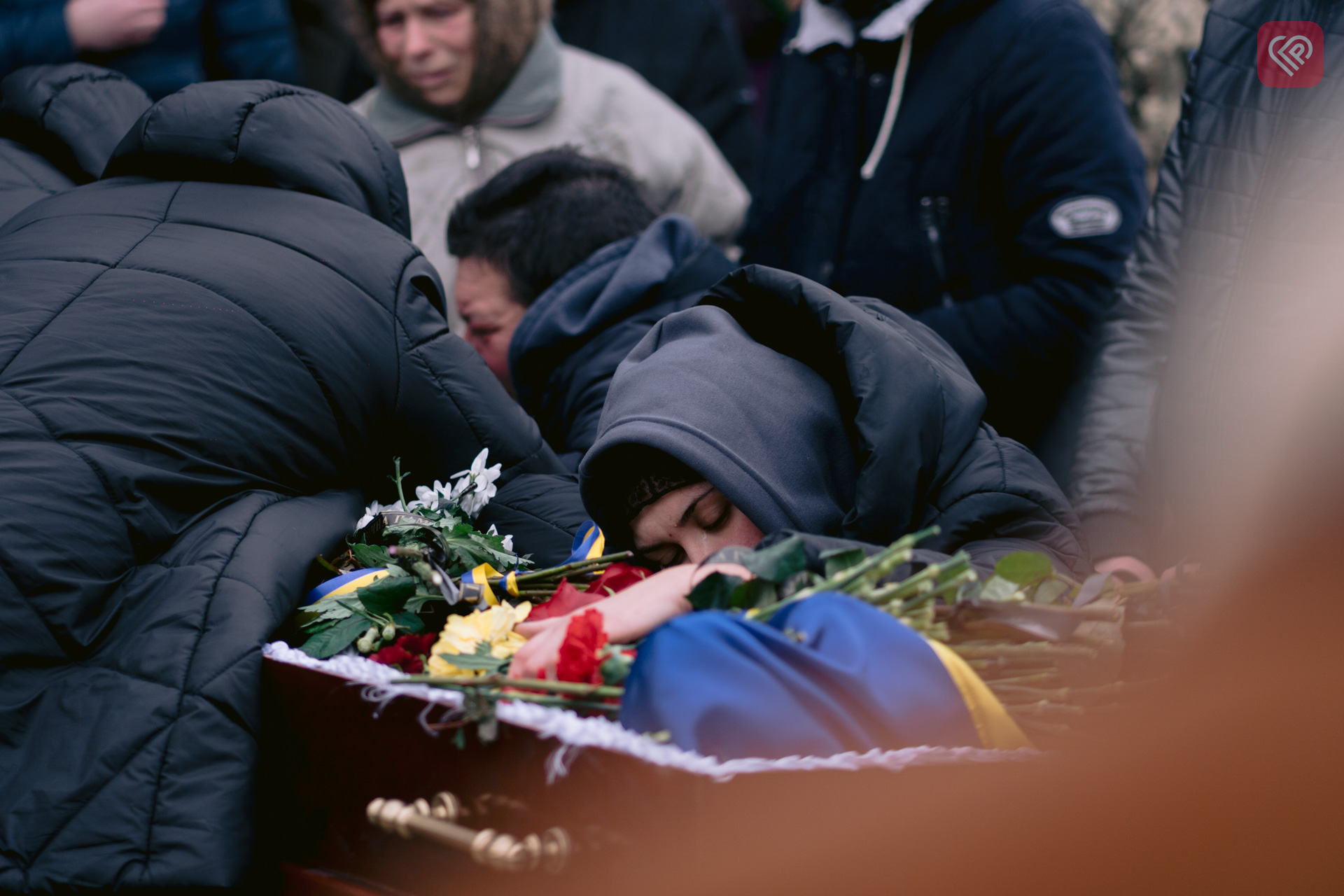 Земляки зустріли траурний кортеж навколішки та провели до будинку на вулиці Покровській, де жив Сергій. Там, біля родинного помешкання, священники ПЦУ відслужили заупокійний молебень.