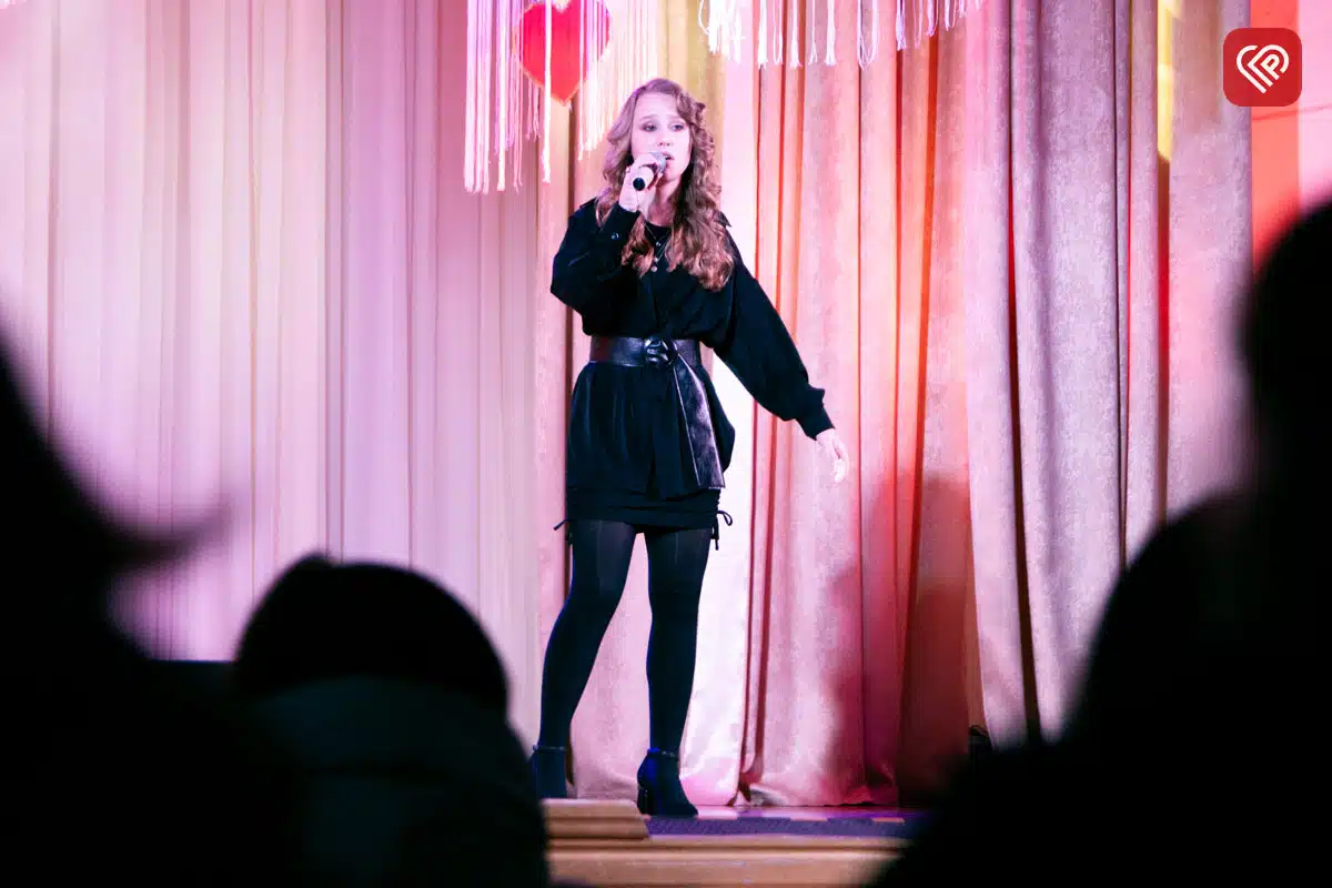 Благодійний вечір тривав, а на сцені з’явилася вихованиця вокальної студії Юлії Денисенко Анжеліка Піскун, яка направду зігріла серця ліричною «Між сірими днями». Після цього хореографічний колектив «Вольтаж» під керівництвом Людмили Бездольної запалив сцену «Welcome to Burlesque».